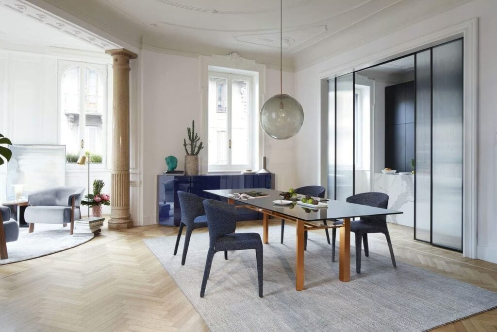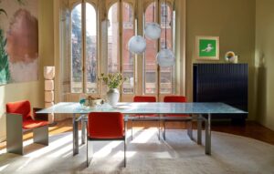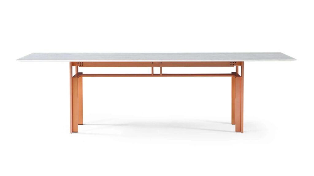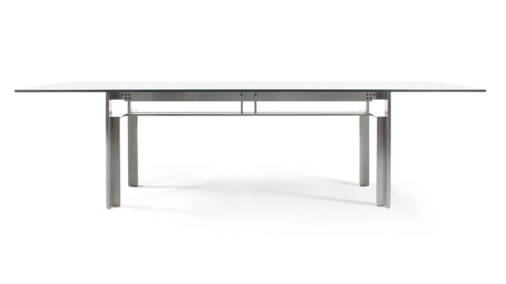 Ein Eckpfeiler des italienischen Designs, eine skulpturenhafte Struktur, die zum Emblem der „ultrarationalen” Bewegung geworden ist. Diese setzte sich gegen Ende der 60er Jahre dafür ein, die vom Rationalismus auferlegten Grenzen zu sprengen sowie die traditionellen ästhetischen Werte zurückzuerobern. Der Tisch Doge ist Teil der SimonCollezione von Cassina und wurde durch die Einführung neuer Bearbeitungen und Materialien aktualisiert, die im Laufe der Zeit die Evolution und Aktualisierung des historischen Modells geprägt haben. Die architektonische Basis aus Aluminium oder satiniertem Stahl, die durch flache Profile mit hoher Dicke definiert wird, stellt den wesentlichen Bestandteil des Tisches dar, während das elegante und raffinierte Auflagemechanismus dank der Transparenz der Glasplatte im Mittelpunkt der Sichtbarkeit steht. Das aktuelle Angebot umfasst fünf Abmessungen, die durch das erste Projekt von Scarpa inspiriert wurden. Sie sind sowohl mit Tischplatte aus Glas als auch aus Marmor erhältlich.