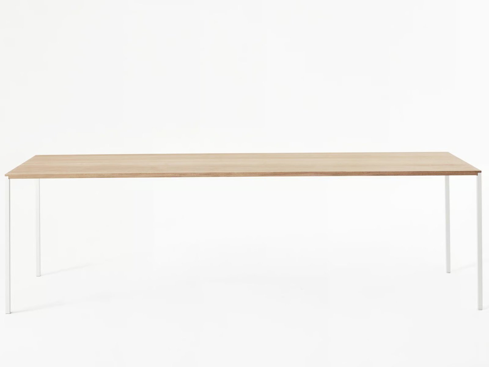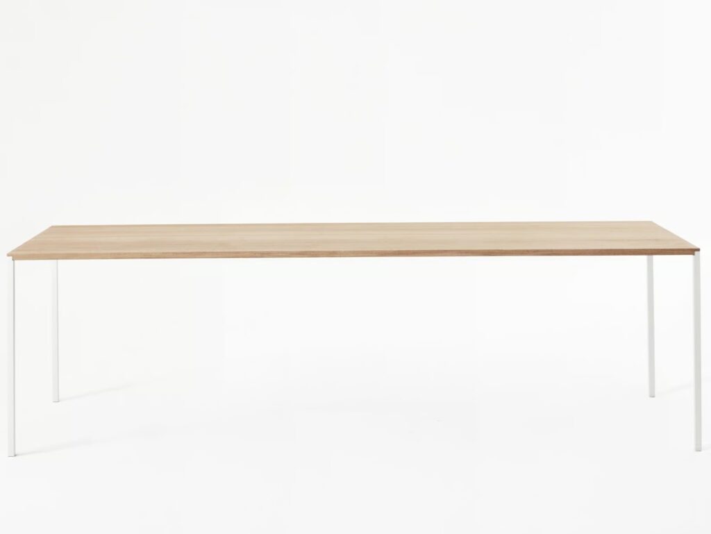 Tisch mit Platte aus Verbundwerkstoff, 25 mm Stärke, bezogen aus Acrylharz, furniertem Holz oder in den handgespachtelten Ausführungen gem. Preisliste. Beine mm 25x25 aus lackiertem Stahl, Ossidiana-Ausführung, oder in gespachtelten Ausführungen.