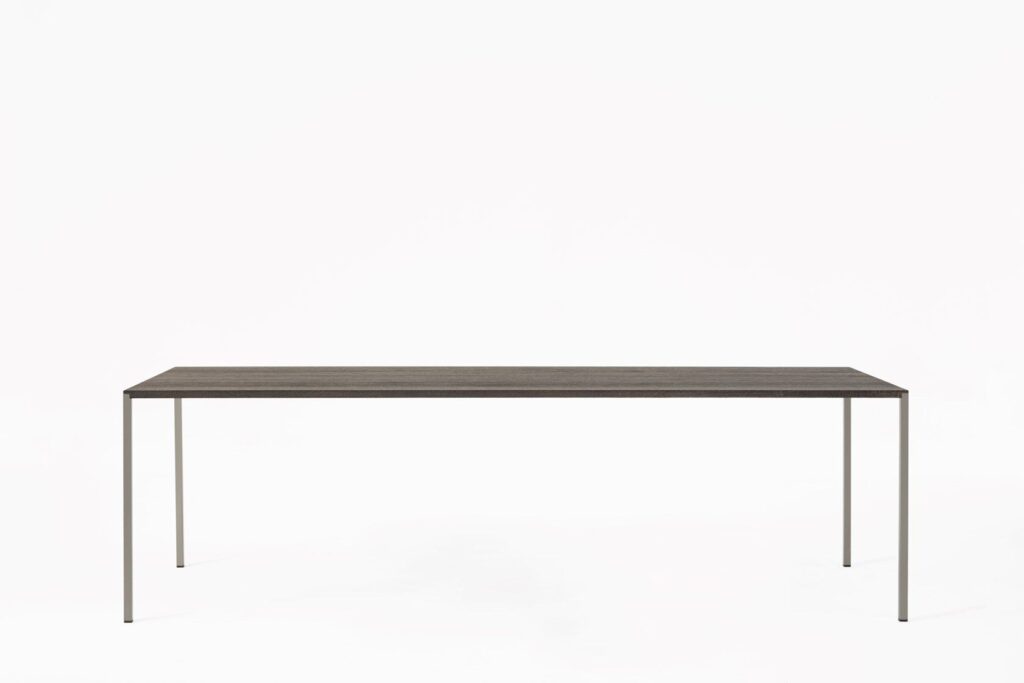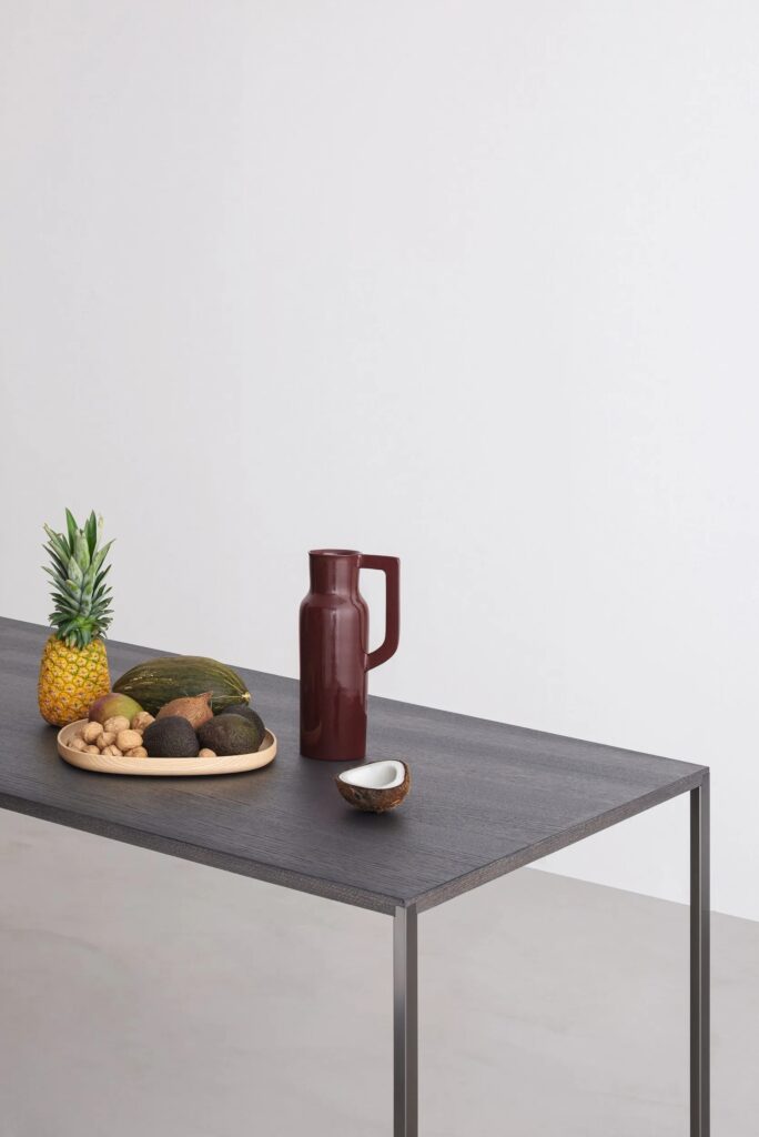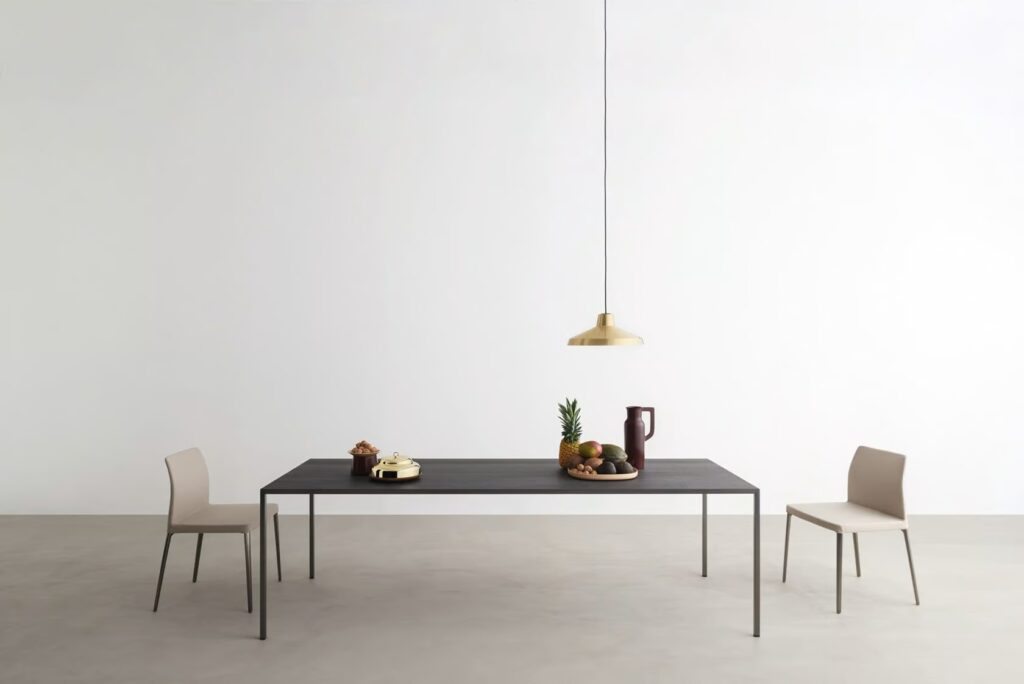 Eine neue Facette verschönert den besonderen Charakter des Tisches 25: In dieser neuesten Version verleiht das Graphit-Eichenholz der polierten Schönheit seines Konzepts Wert. Ein typisches Beispiel für Desaltos Forschung im Bereich der Materialinnovation.