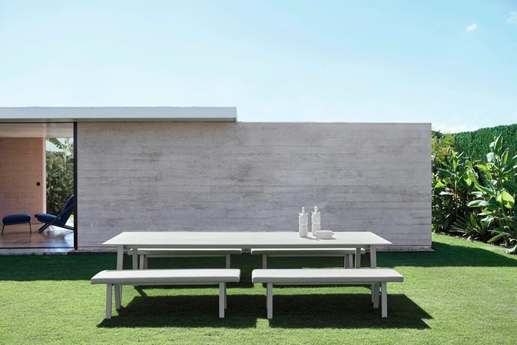 TIMELESS ist die Outdoor-Möbelkollektion, die von der rationalen Architektursprache des frühen 20. Jahrhunderts inspiriert ist und von José A. Gandía-Blasco Canales und Borja García entworfen wurde. Das Design mit dezenten, aber unverwechselbaren Formen vermittelt Ehrlichkeit, ohne unnötige Verzierungen ausser der Struktur. Die verschiedenen Elemente sind sorgfältig aufeinander abgestimmt, um maximalen Komfort zu bieten.