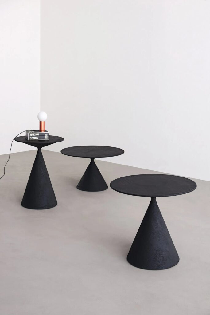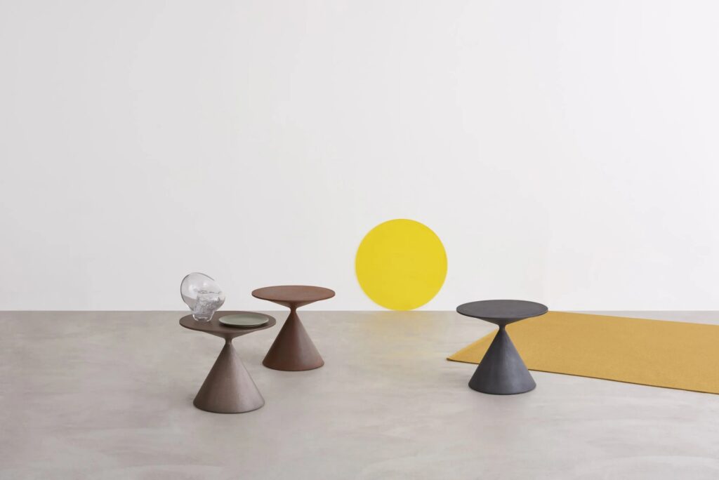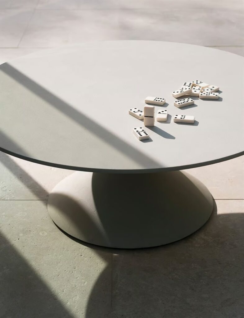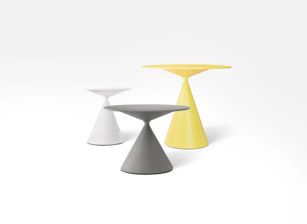 Mini Clay - Tischchen mit Basis aus hartem Polyurethan mit lackierter oder manuell gespachtelter Oberfläche, Ausführungen laut Preisliste. Platten aus den usführungen Keramik, MDF lackiert gespachtelt. Verfügbar für In- und Outdoor.