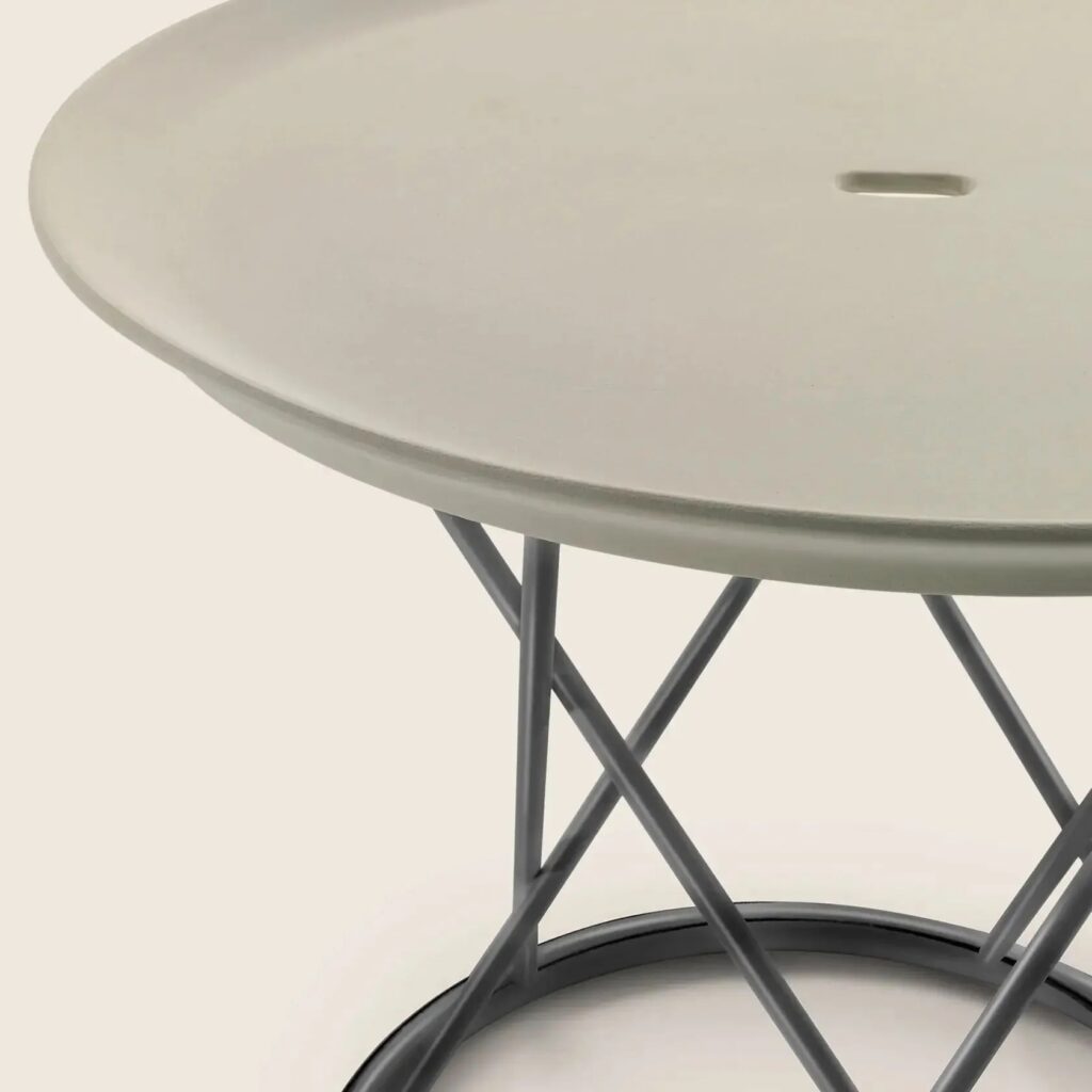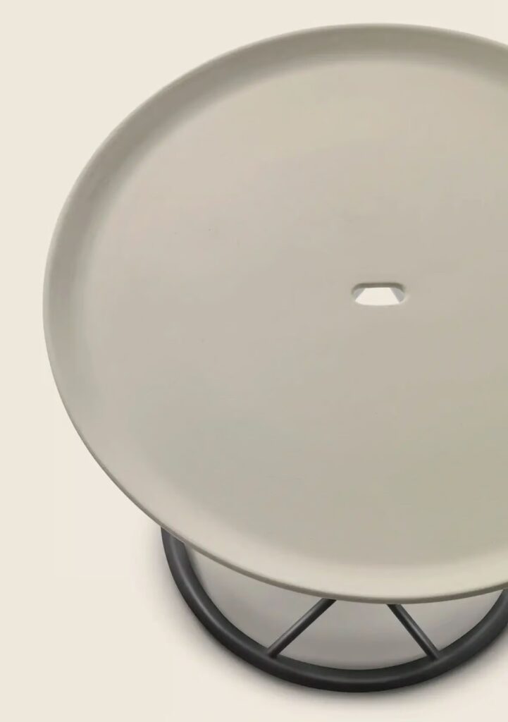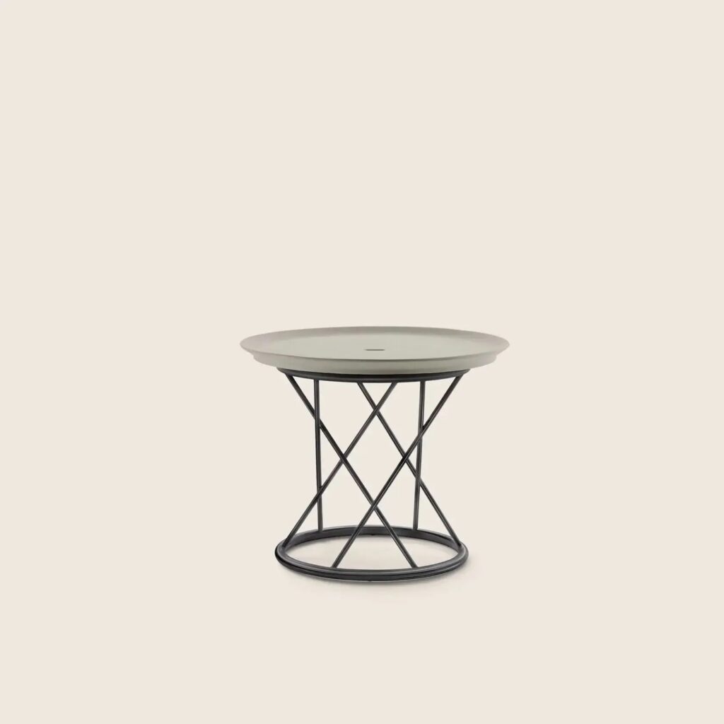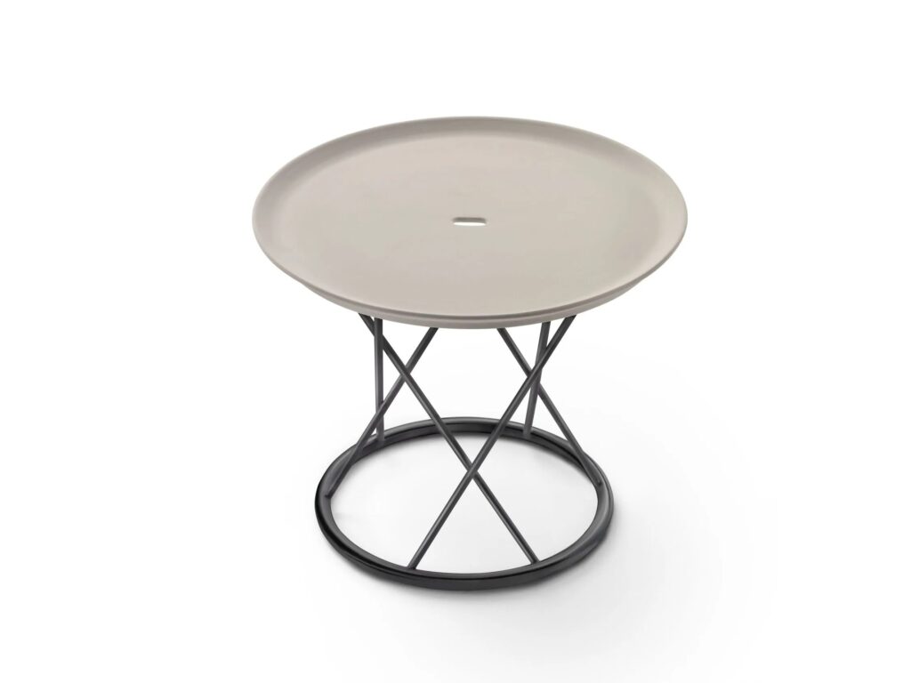 TORCELLO is a round side table with a powder-coated steel frame, available in two sizes.