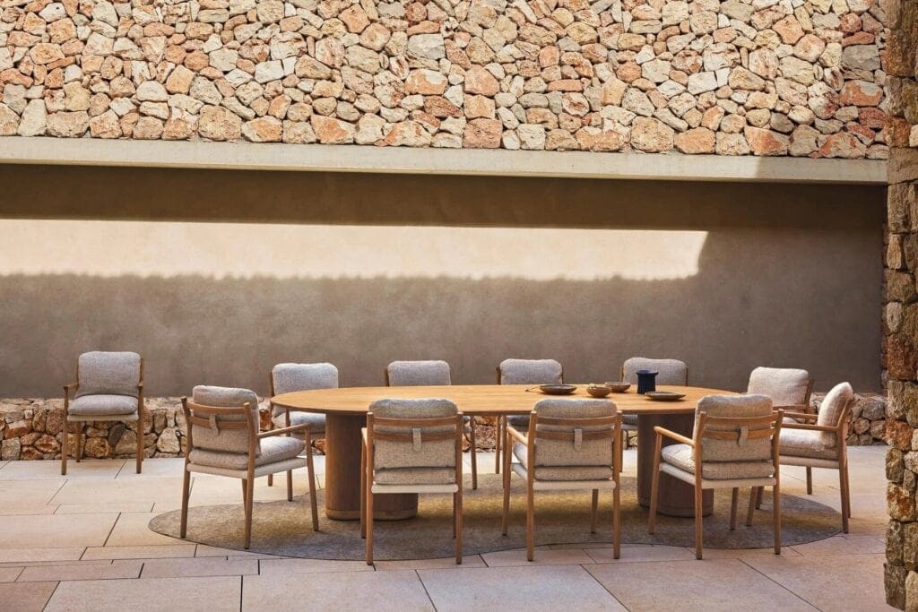 Inspiriert von der Fusion aus natürlicher Eleganz und zeitlosem Design lädt die Ogado-Kollektion dazu ein, die Schönheit organischer Formen und einladender Texturen zu geniessen. Jedes Stück, mit höchster Präzision und viel Liebe zum Detail gefertigt, spiegelt die anmutigen Linien der Natur wider – von den fliessenden Tischplatten aus Keramik oder Teakholz bis hin zu den einzigartigen, skulpturalen Holzuntergestellen, die von natürlichen Formen inspiriert sind. Finden Sie Ruhe und Ausgeglichenheit in der Kombination aus Teakholz und Keramik, die in jedem Aussenbereich eine ruhige, beruhigende Atmosphäre schafft.