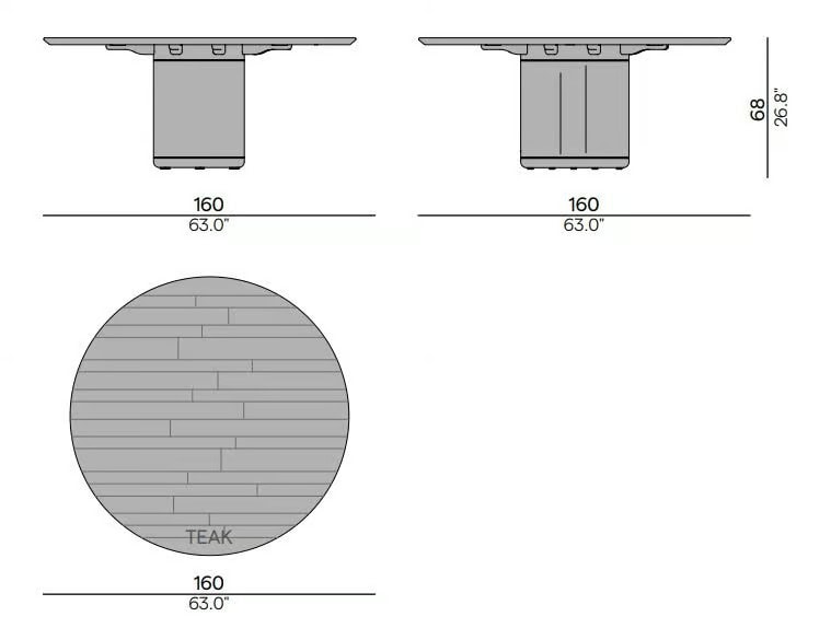 Der runde Ogado Esstisch von Manutti vereint natürliche Eleganz mit zeitlosem Design. Entworfen von Brent De Meulenaere, bietet er ein skulpturales Teakholzgestell und eine geräumige runde Tischplatte (Ø160 cm), die bequem sechs Gäste beherbergt. Wetterfest mit optionaler Schutzabdeckung, ideal für stilvolle Outdoor-Dinner.