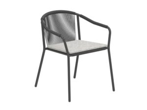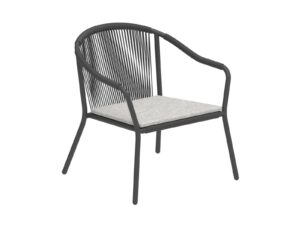 Der schlichte, aber bemerkenswerte Aluminium-Rohrrahmen ist mit einer Kombination aus gewebten Olefin-Seilen und Bändern umwickelt. QuickDry-Schaum ist in den Sitz integriert und sorgt für ein besonders weiches Gefühl! Der SAMBA ist als Tischstuhl und als niedriger Sessel erhältlich. Beide sind problemlos stapelbar. Ein passendes Set aus drei runden Beistelltischen aus Aluminium rundet das Bild ab.