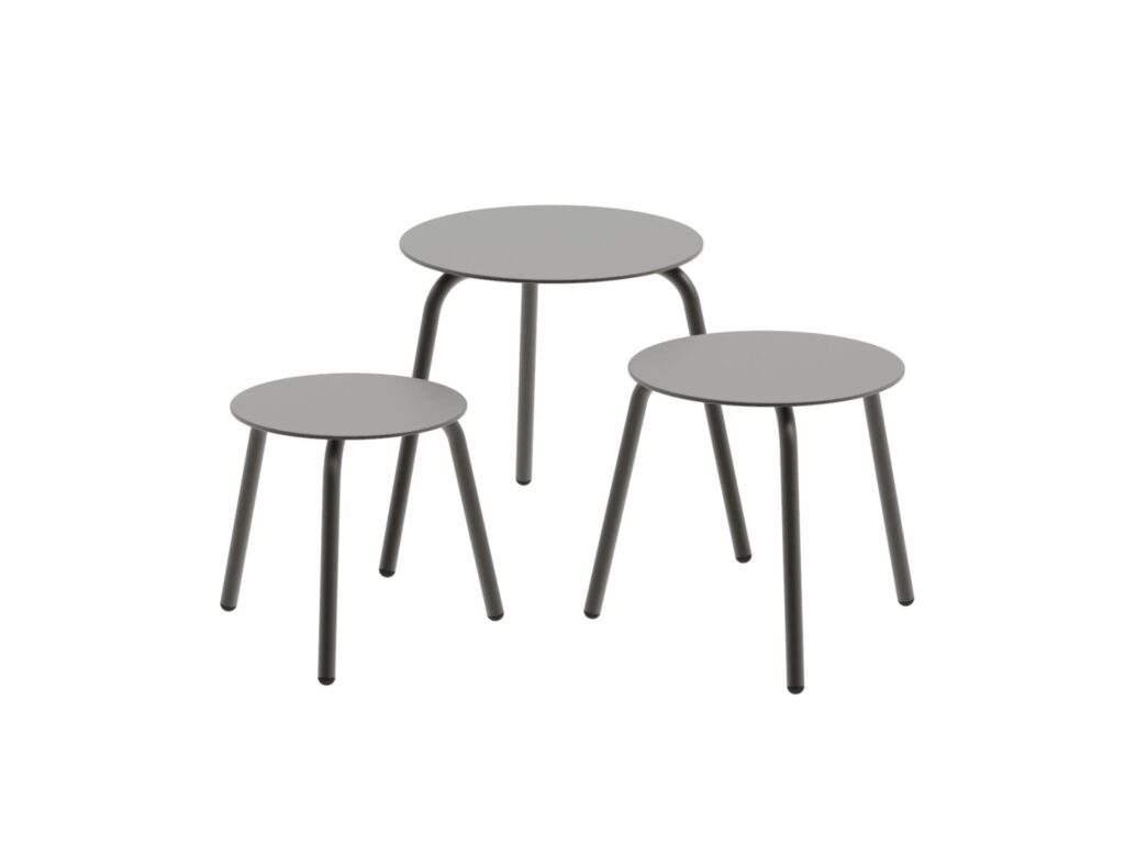 Samba ist ein Set aus 3 runden Couchtischen aus lackiertem Aluminium.