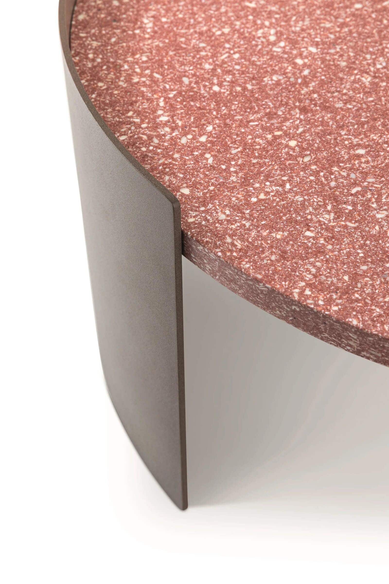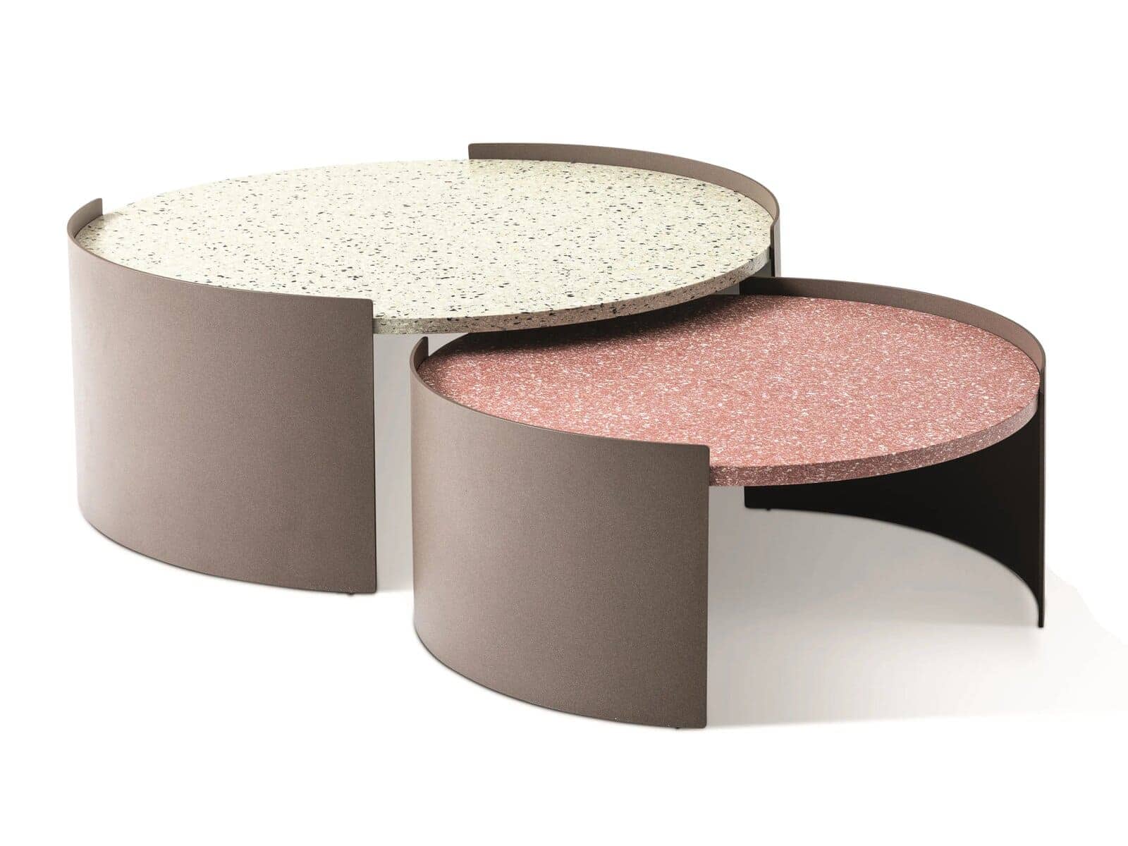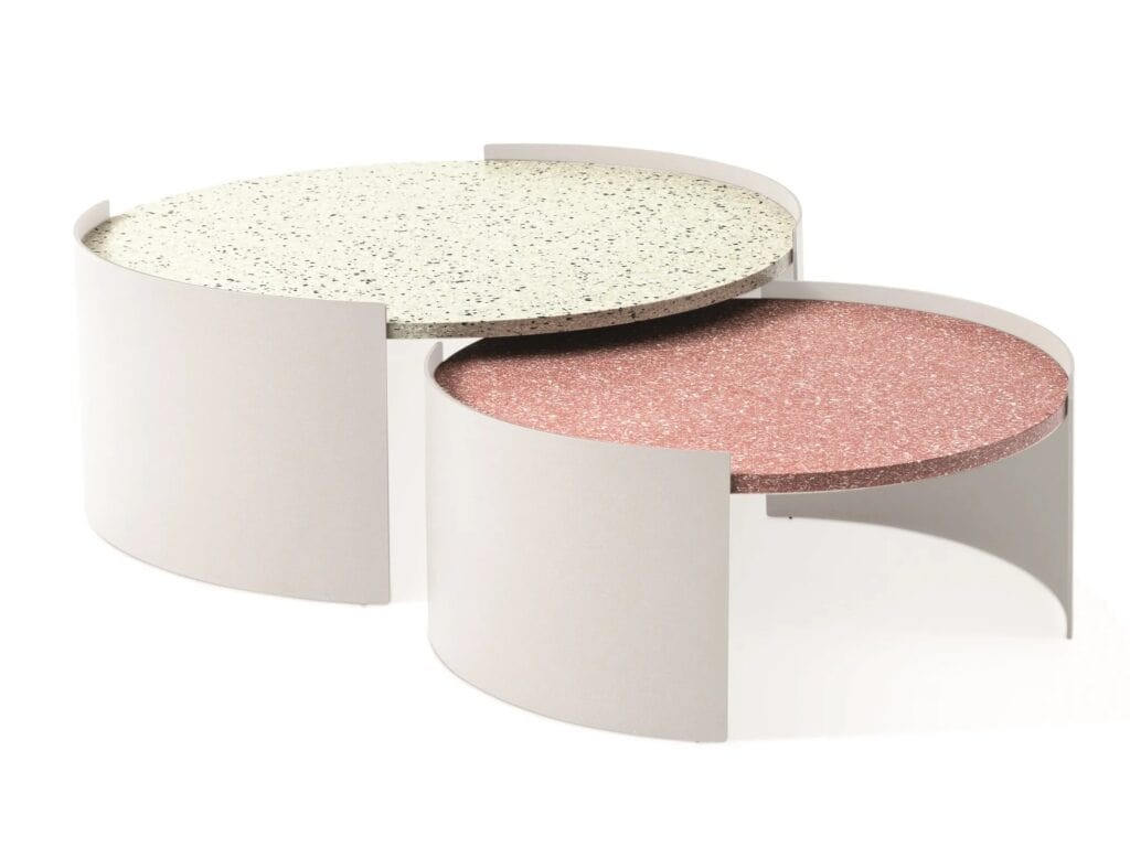 Die Tischchen Bowy mit seinen abgerundeten Formen wie das originelle Sofa für drinnen, das Patricia Urquiola 2018 entworfen hat, werden nun auch in der Outdoor-Version angeboten. Sie können übereinander und überkreuzt aufgestellt werden und sorgen für die Einrichtung von Wohnbereichen im Freien mit zwei unterschiedlichen Grössen, denen die lackierte Struktur aus Aluminiumblech gemeinsam ist, mit Finish Schlamm texturiert und Elfenbein texturiert, sowie die Tischplatte aus recyceltem Fiberglas RFM®, die in den Farben Weiss und Rot oder Weiss und Grau erhältlich ist.