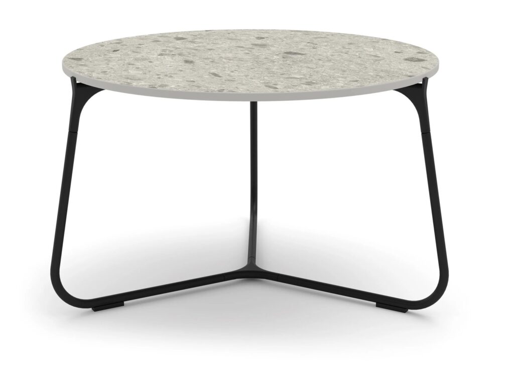 Mood ist ein runder Gartentisch aus Keramik.