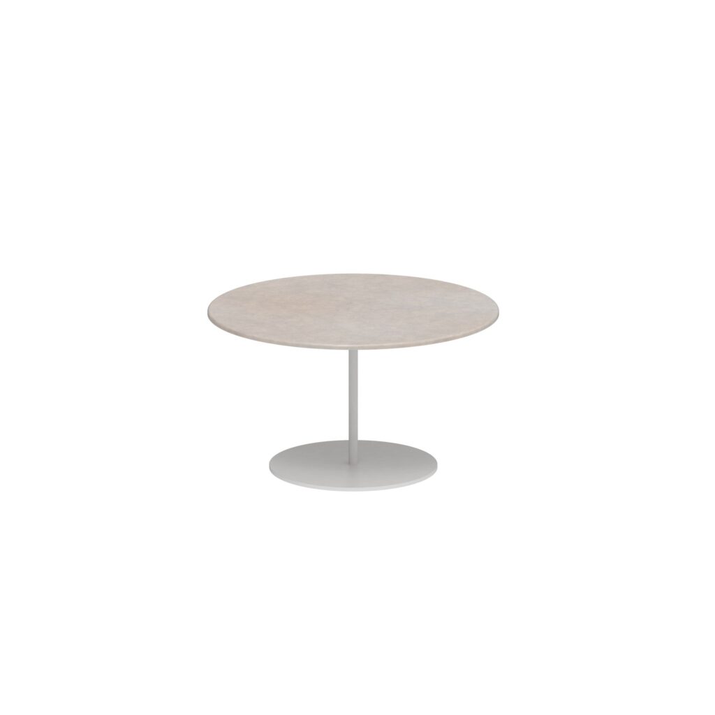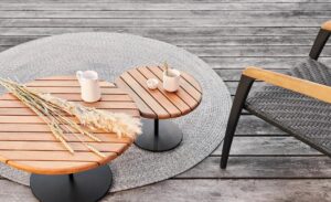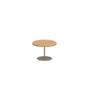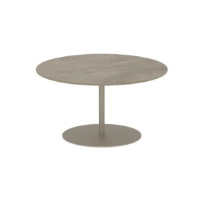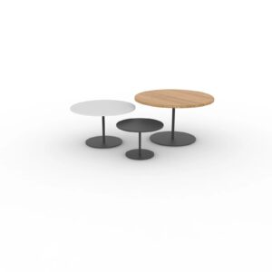 Für den neuen Butler mit einen Durchmesser von 40 oder 60 cm gibt es eine grosse Auswahl von Tischplatten aus den unterschiedlichsten Materialien: Teakholz, neun verschiedene Keramikoberflächen und emaillierter Lavastein in sechs verschiedenen Farben. Butler passt sehr gut zu niedrigen Sitzgruppen und Lounge-Kombinationen.