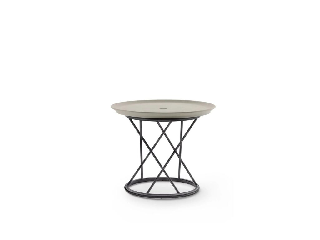 TORCELLO OUTDOOR is a round garden side table made of powder-coated steel, available in two sizes.