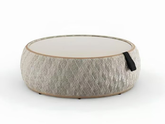 DALA - Hocker / Kaffeetisch. Runder Gartentisch aus Kunstfaser.