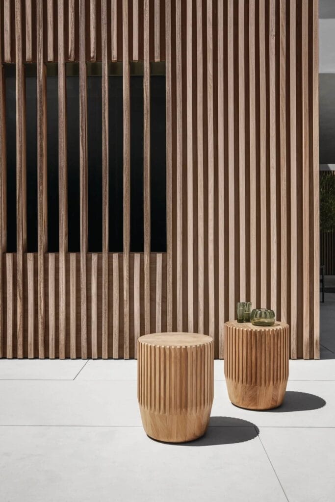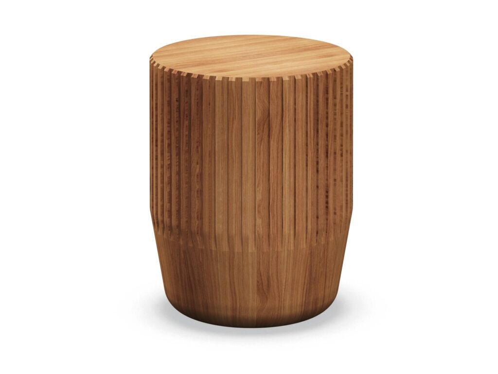 ARBOR ist ein runder Beistelltisch aus Teakholz für den Garten.