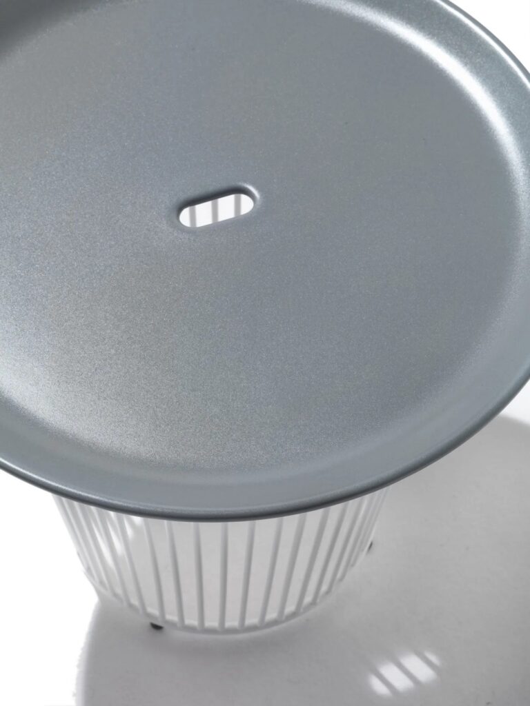 Ein Loch im Zentrum der Platte verhindert stagnierendes Regenwasser.