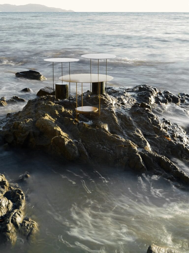 Panna Cotta, entworfen von Ron Gilad, stellt eine Kombination aus Zartheit und Stabilität dar; es ist ein Paradoxon in der Verwendung von Materialien wie Marmor und Eisen, um eine zerbrechliche Solidität zu erreichen.