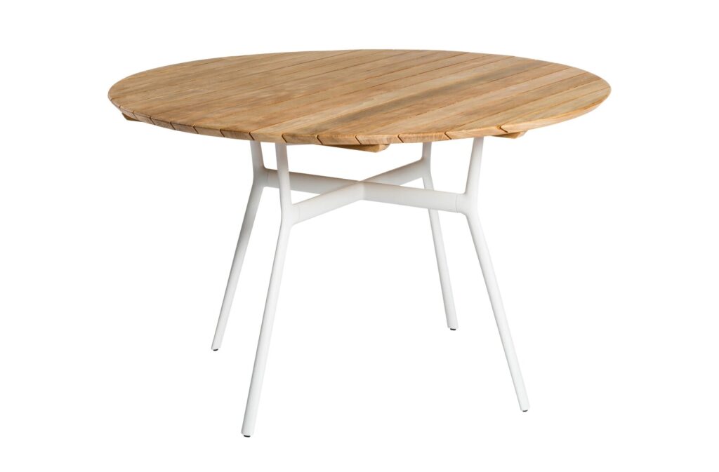 Runder Gartentisch aus Aluminium und Holz