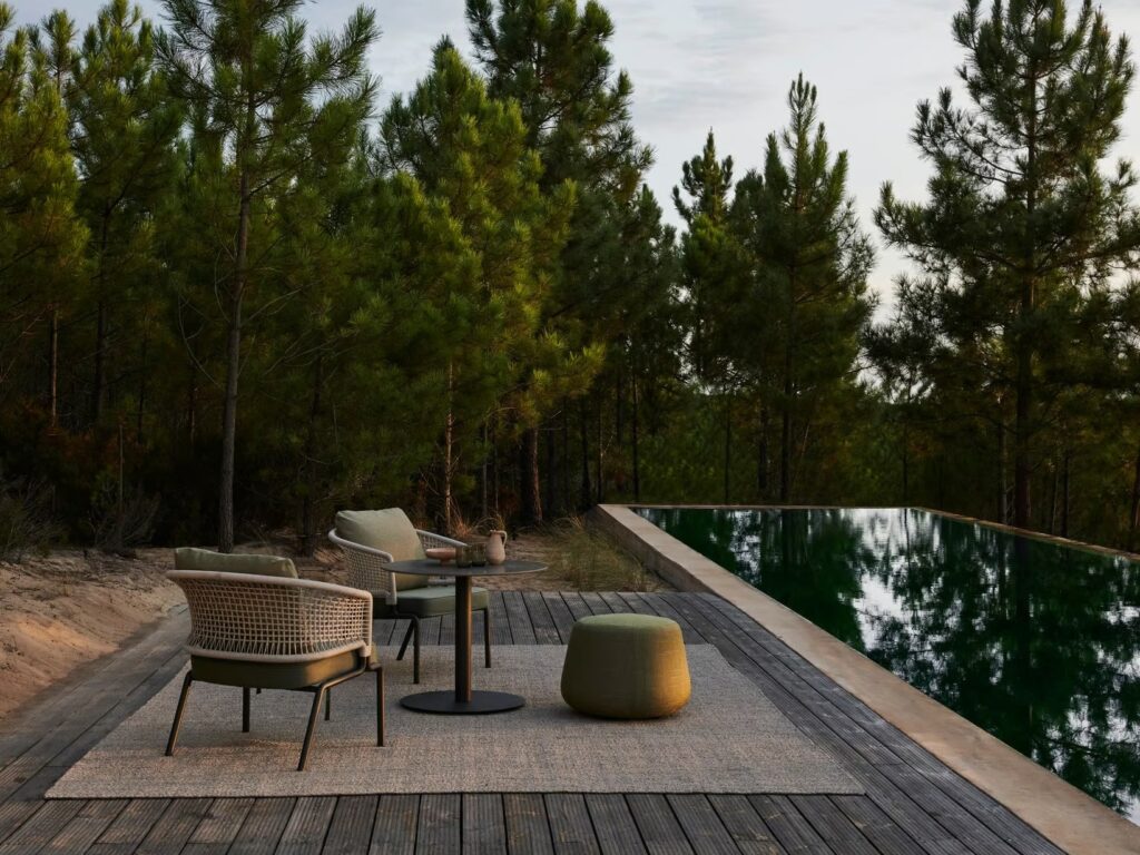 Der elegante T-Table mit seinen raffinierten Proportionen und eleganten Materialien entführt Sie in Träume eines glamourösen „Dolce-Vita“. Die Tischplatte aus glasiertem Lavastein, der vom Vesuv stammt, spiegelt den Himmel und erinnert an eine leicht gekräuselte Wasserfläche. Die farbige Glasur wird von Hand aufgetragen. Nach dem Brennen bei hoher Temperatur entsteht ein subtiler Craquelé-Effekt, der jedem Tisch ein einzigartiges Aussehen verleiht. Die Glasur macht die Tischplatte wasser-, hitze-, frost-, UV- und fleckenfest und sorgt außerdem für eine einfache Pflege. Dieser minimalistische und zeitlose Tisch ist auch als „niedriger Esstisch“ mit einer Höhe von 67 cm erhältlich. Das macht das Essen im Freien noch entspannender.