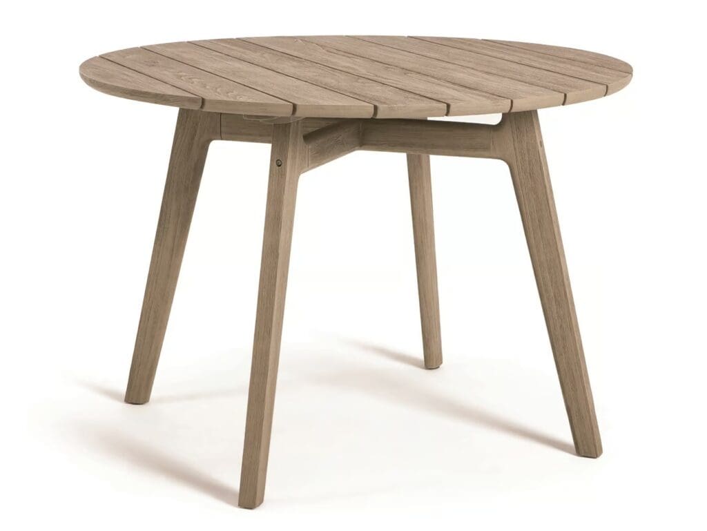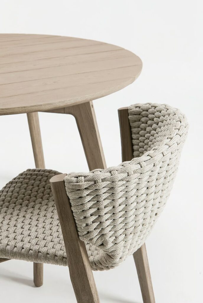 Ethimo und Patrick Norguet haben ein neues Element hinzugefügt, um ihre Serie von Einrichtungsgegenständen für Momente des Zusammenseins auf der Terrasse, im Garten oder in Aussenbereichen zu vervollständigen: ein runder Tisch aus naturbelassenem oder gebeiztem Teakholz. Auch der neue Tisch Knit weist die klaren, schlichten Linien der anderen Tische der Kollektion auf und ist dafür konzipiert, maximale Freiheit bei der Aufstellung in Wohn- und Objektkontexten zu ermöglichen.