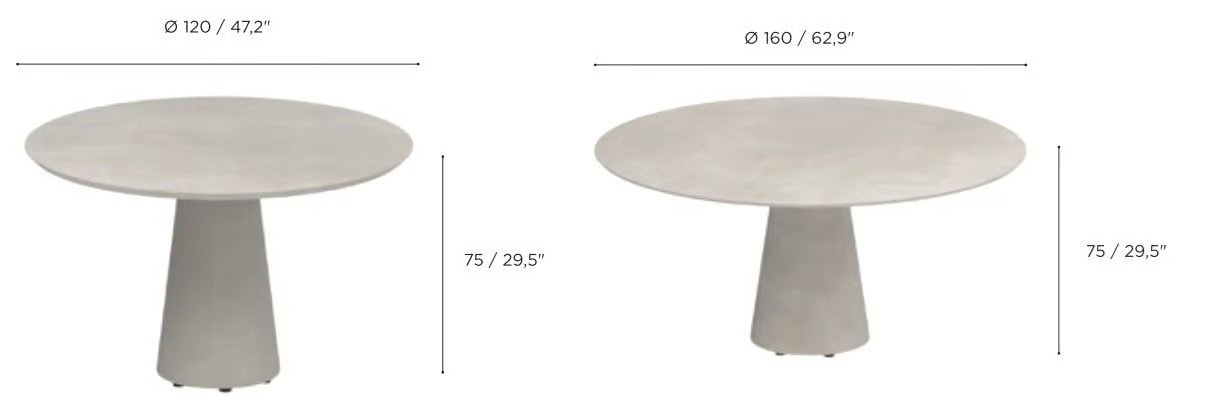 Der Name dieser Tischkollektion bezieht sich offensichtlich auf die konische Form des Betonsockels. Dieser ist aus faserverstärktem Ductal®-Beton gegossen – speziell für runde Tischplatten mit einem Durchmesser von 160 cm oder elliptische Tischplatten mit einer Länge von 320 cm. Die Beton-Oberflächen sind poliert und behandelt, um sie weniger porös zu machen. Es besteht auch die Möglichkeit, die Sockel mit Keramikplatten zu kombinieren. Es gibt hierzu eine Vielzahl von Farben, Texturen und Formen. Diese Tische ähneln Chamäleons; sie passen perfekt zu jedem Stuhl, jedem Design, jeder Farbe, jeder Textur und jeder Form.