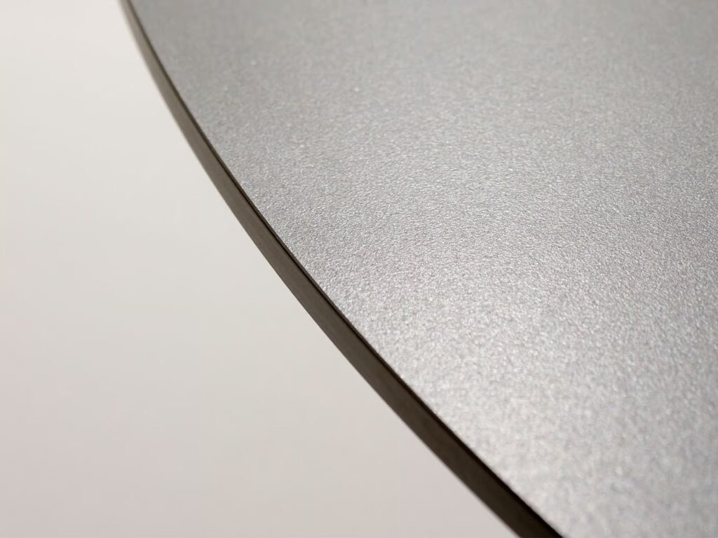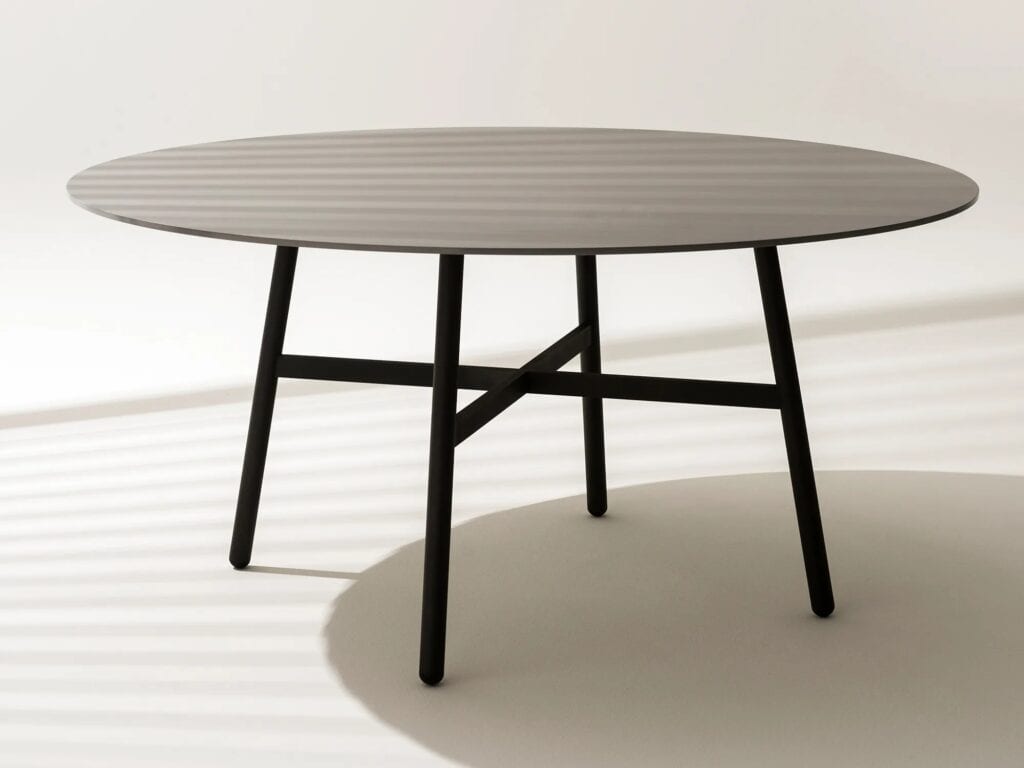 GAMMA 160 is a round outdoor table with a steel base.