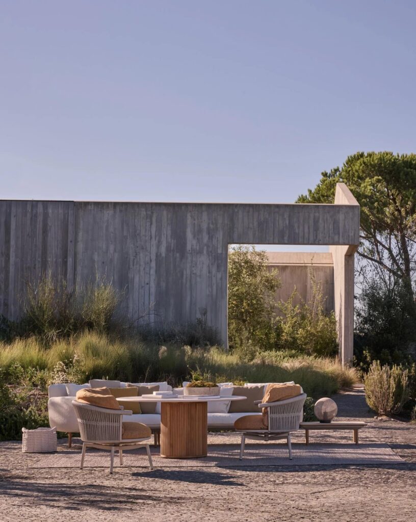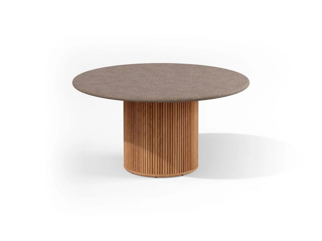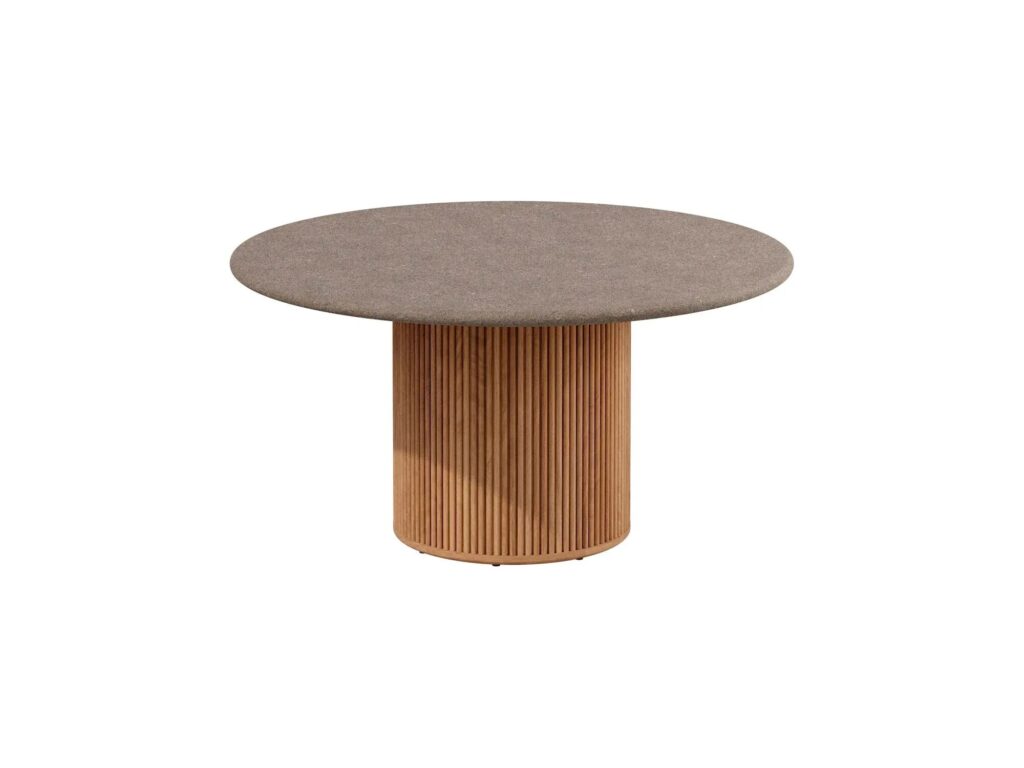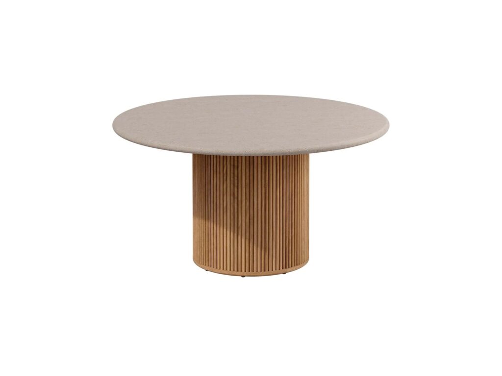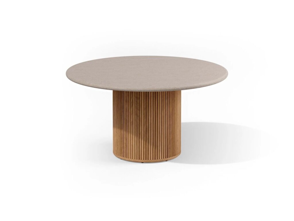 Otto is a round high table in teak with a top in ceramic or travertine.