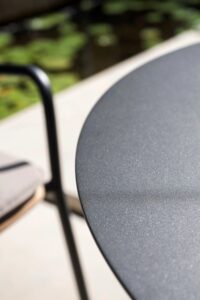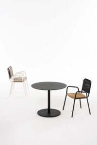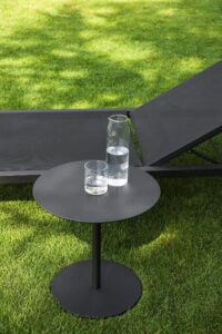 BUTTON LOW is a round low outdoor table made of powder-coated aluminum.