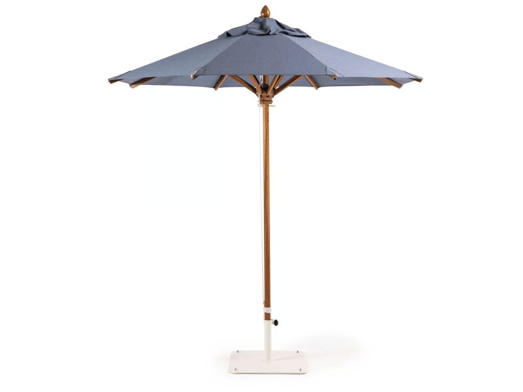 Runder Sonnenschirmdurchmesser mit zentraler Stange und Umlenkrolle zum Öffnen und Schliessen.