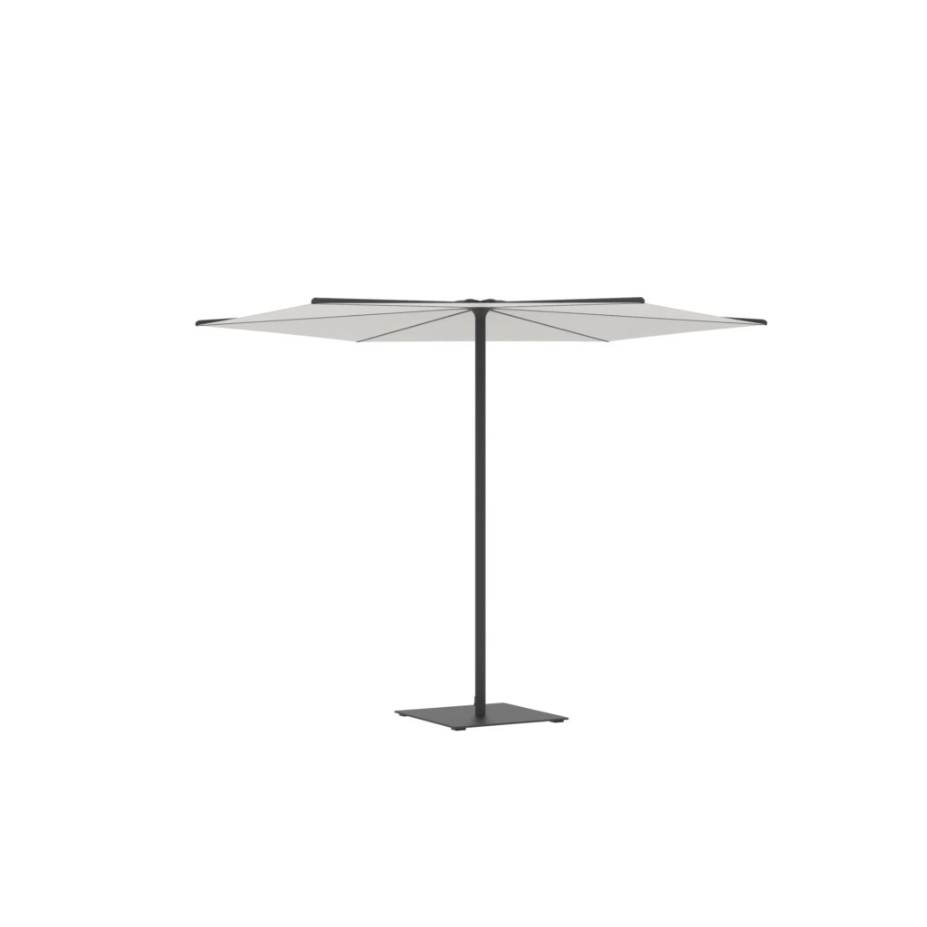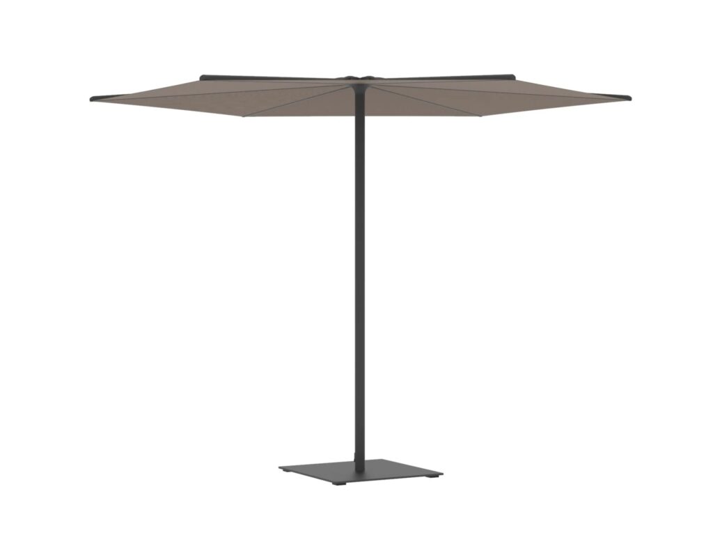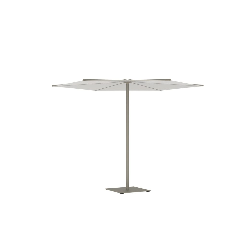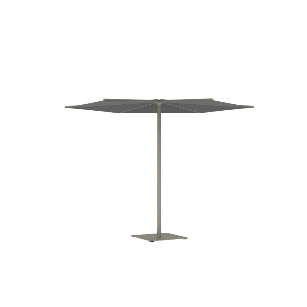 Oazz ist ein Gartenschirm, der in runder oder quadratischer Form erhältlich ist.
