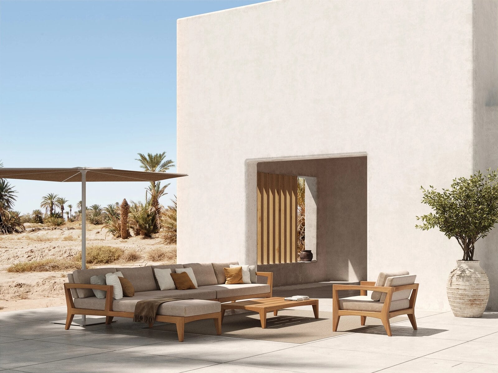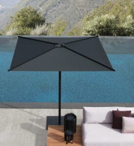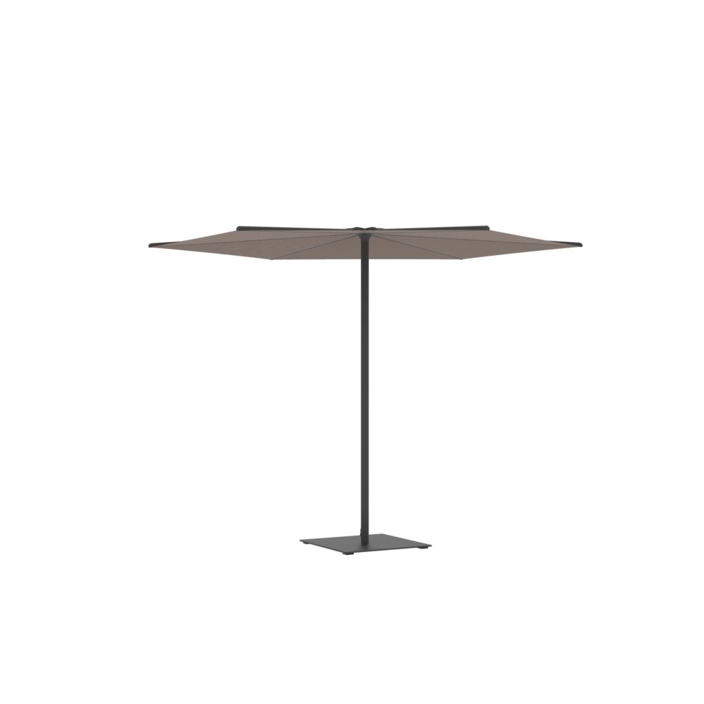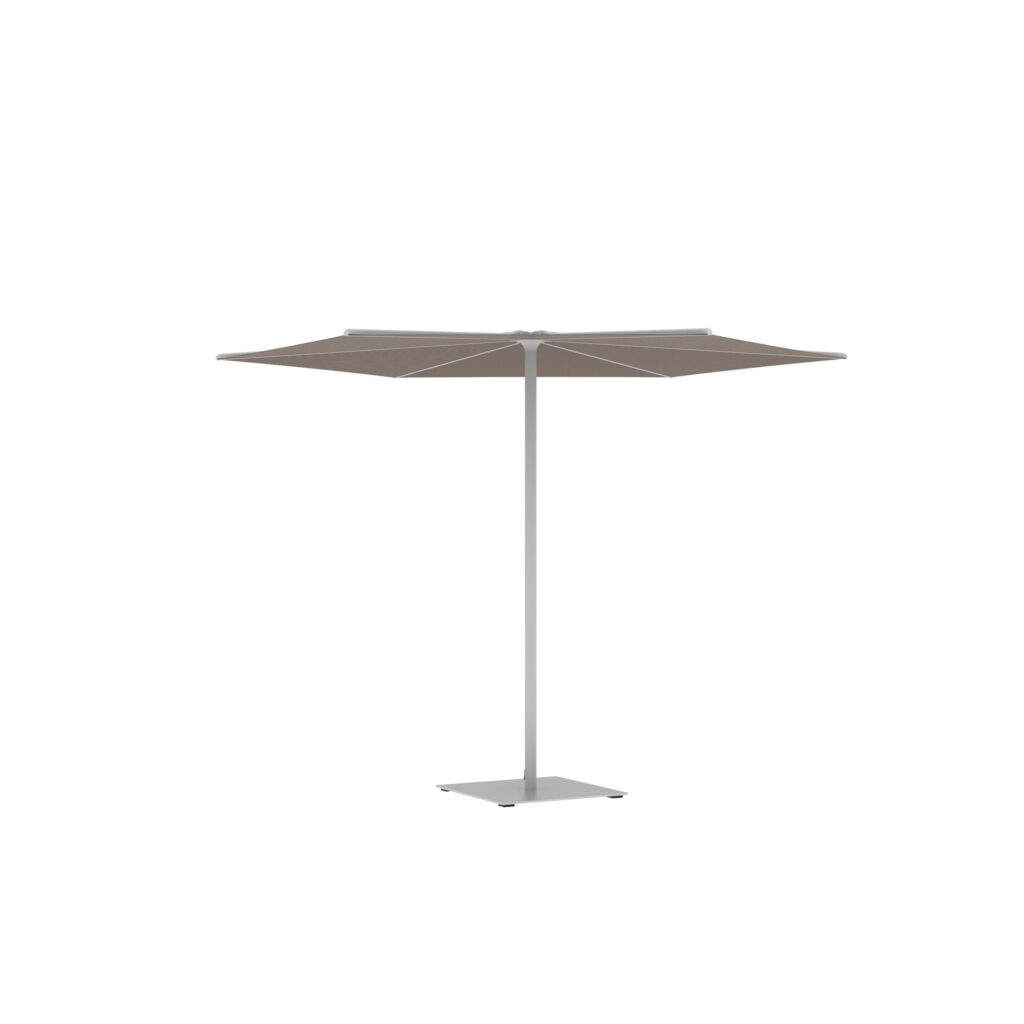 Oazz ist ein Gartenschirm, der in runder oder quadratischer Form erhältlich ist.