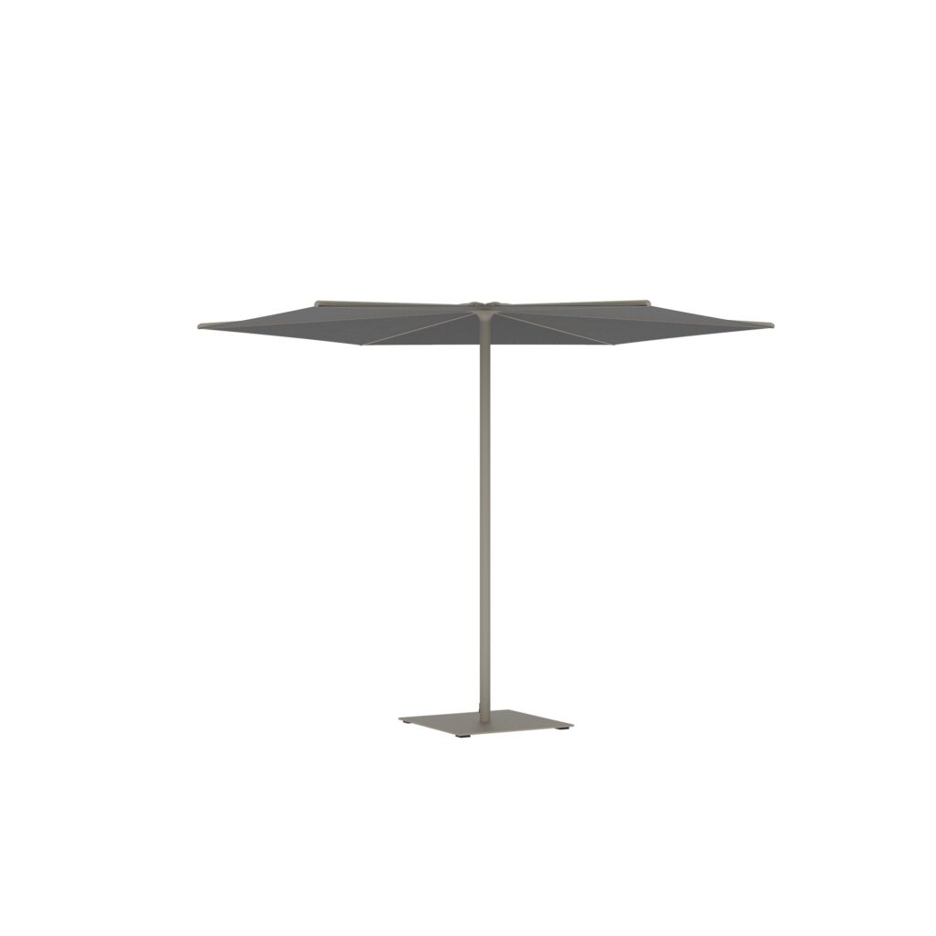 Der Oazz verfügt über die gleiche einfache automatische Handhabung und ist ebenso raffiniert und geschmackvoll wie sein Vorgänger. Das geradlinige Gestell verleiht ihm ein minimalistischeres Aussehen. Die Batyline-Bespannung des Oazz befindet sich nicht oben, sondern ist zwischen den Streben angebracht, wodurch der Sonnenschirm ein sehr charakteristisches Aussehen erhält. Erhältlich sowohl in einer quadratischen Version von 2,2 x 2,2 m als auch in einer Version mit Ø 3 m. Optional ist eine beschichtete, verzinkte Ständerplatte in der gleichen Farbe erhältlich, ebenso wie andere Ständer aus unserer Kollektion.