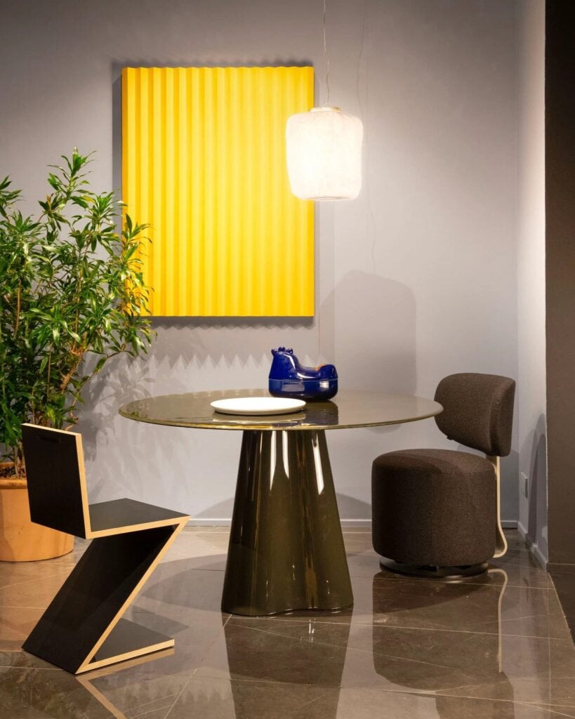 A characteristic element of the table collection, the base is made of rigid polyurethane with a percentage derived from biological sources, available in both glossy and matte finishes. Used for the first time by Cassina for Treflo, this material fits into the company’s broader research to identify innovative material solutions for a more sustainable approach.