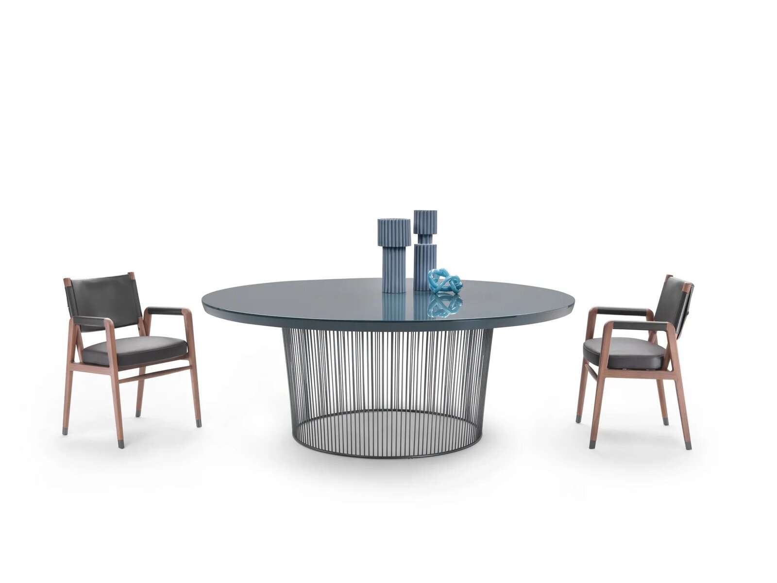 Das leichte Gestell besteht aus dünnen Metallstäben und ist satiniert, verchromt, schwarz verchromt, brüniert und Gunmetal grau erhältlich.
