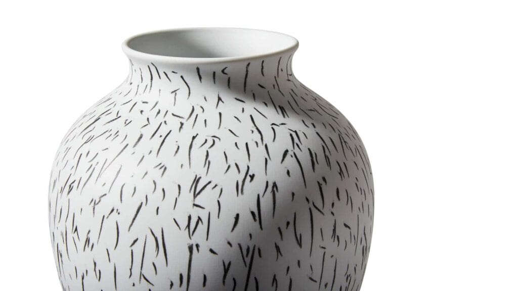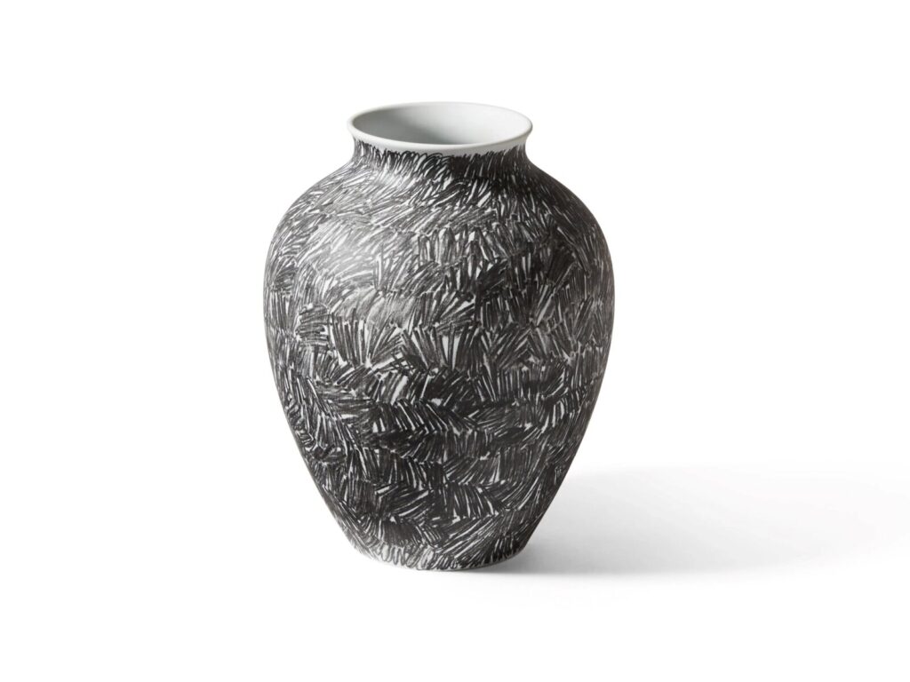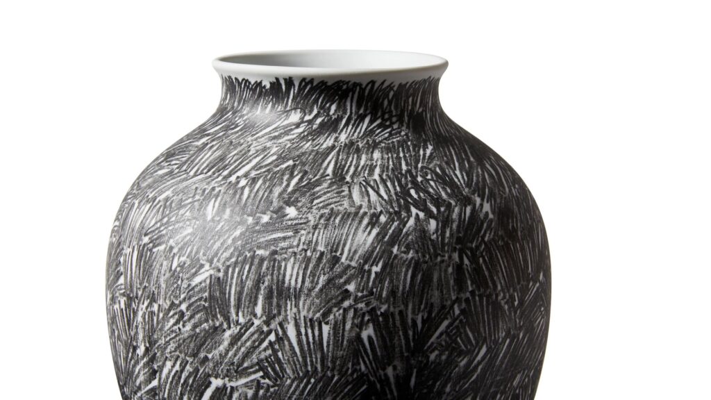 Die Entwürfe von Formafantasma werden dank des Know-hows, des Könnens und der Erfahrung der Malermeister von Ginori 1735 zu Dekorationen auf Porzellan. Sie arbeiten auf natürliche Weise und hinterlassen ihre Spuren durch instinktive Bewegungen, abstrakte Zeichen, die das Konzept der Dekoration aktualisieren. Die Kollektion besteht aus einer Reihe von Vasen mit unterschiedlichen Formen, zeitgenössischen Objekten, die allein stehen oder zu grafischen Kompositionen zusammengefügt werden können. La particolarità della lavorazione consiste nella decorazione “a graffito” sulla porcellana bisquit ottenuta con una cottura diretta: il graffito viene disegnato sulla superficie con un pigmento nero e successivamente fissato.