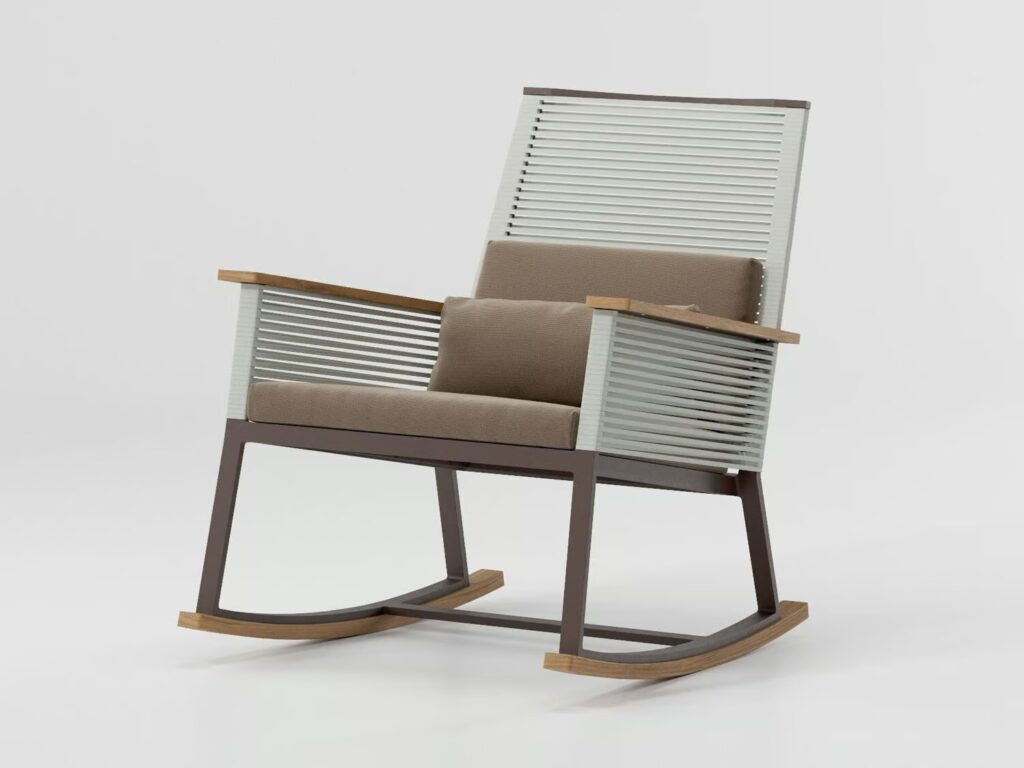 Materialien: Seil, Aluminium, Teakholz, gefärbtes Acryl-Gewebe