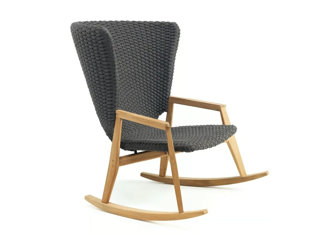 Ein zeitgenössisches Design, eine umhüllende Form und eine raffinierte Eleganz „begleiten“ die sanfte Bewegung von Knit rocking chair. Um die Kollektion Knit abzurunden und die Momente unter freiem Himmel noch angenehmer und entspannender zu gestalten, haben Ethimo und Patrick Norguet den Lounge-Sessel mit hoher Rückenlehne in der Schaukelausführung kreiert und somit die klassische Bergère völlig neu interpretiert. Mit Knit rocking chair verwandelt Ethimo den Schaukelsessel, eine unvergängliche, traditionelle Stilikone, in ein modernes, elegantes Einrichtungsobjekt, das ein Höchstmass an Komfort ermöglicht und eine warme, entspannende Ausstrahlung besitzt. Knit rocking chair wird aus den gleichen Materialien wie die gesamte Kollektion angefertigt: Naturbelassenes Teakholz oder Mahagoni in der Lackausführung Stromboli-Schwarz werden mit dem exklusiven Geflecht von Ethimo, Comfortable Flat Rope, kombiniert. Mit Ethimo wird der Schaukelsessel wieder zum Protagonisten der modernen Ausseneinrichtung, aber nicht nur. Knit rocking chair passt dank seiner einladenden Form und seiner wertvollen Materialien ausgezeichnet auch zu Innenbereichen wie Schlaf-, Wohn- und Esszimmer.