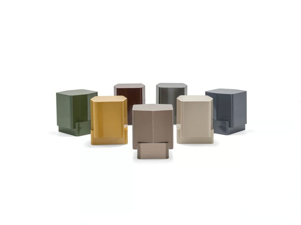 With a sculptural shape that echoes the geometric play of the Odile tables, Lèa acts as a connecting element among different pieces of furniture, enhancing the principles of modularity and complementarity that define Christophe Delcourt’s design vision.