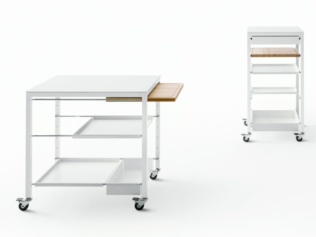 Servierwagen für Gerichte aus Stahl mit Schubladen