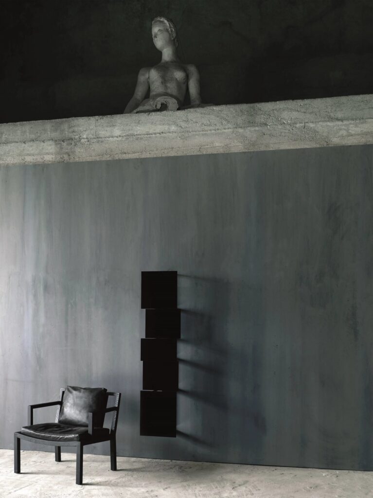 GRAY ist ein kleiner Sessel mit einem Gestell aus massivem Eichenholz und einer mehrschichtigen Rückenlehne, die mit Eichenholzplatten furniert und umrandet ist und mit Acrylfarbe auf Wasserbasis natur oder anthrazit gefärbt ist.