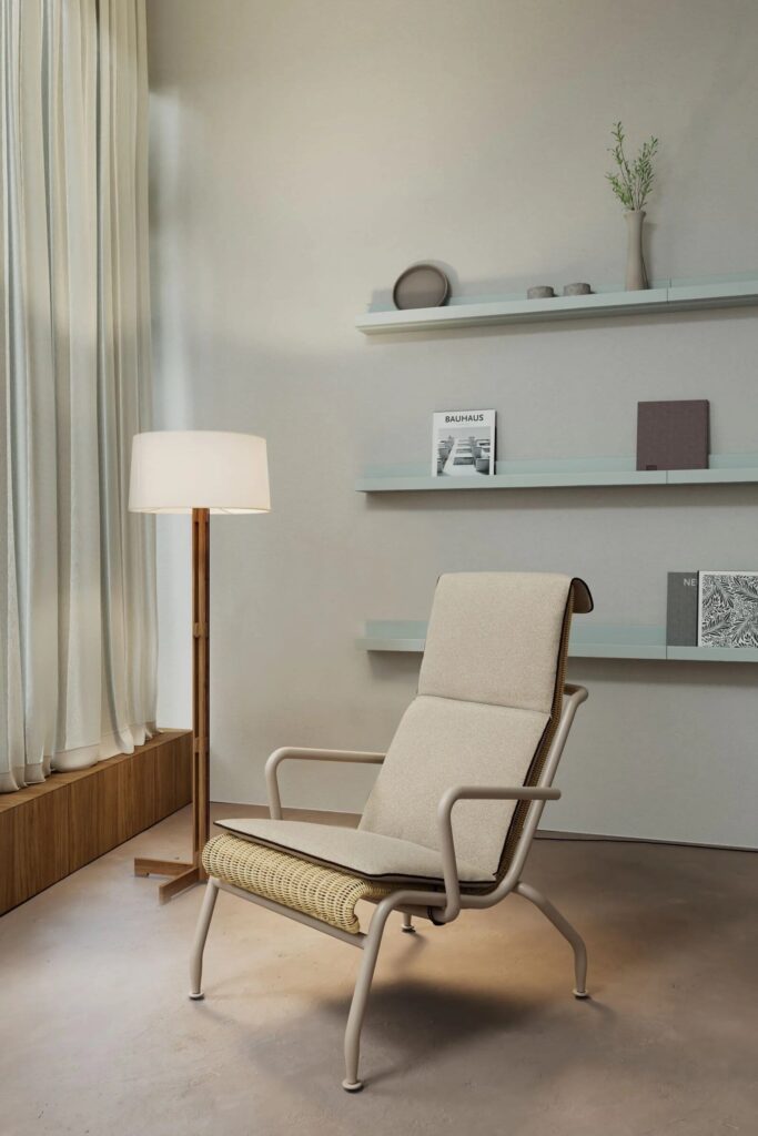 Die Eolias-Kollektion von Antonio Citterio wurde mit dem Ziel entwickelt, vielseitige Produkte zu schaffen, die sowohl im Freien als auch in Innenräumen funktionieren. Der Schwerpunkt liegt auf Nachhaltigkeit durch die Verwendung natürlicher und synthetischer Materialien wie Aluminium und Rattan.