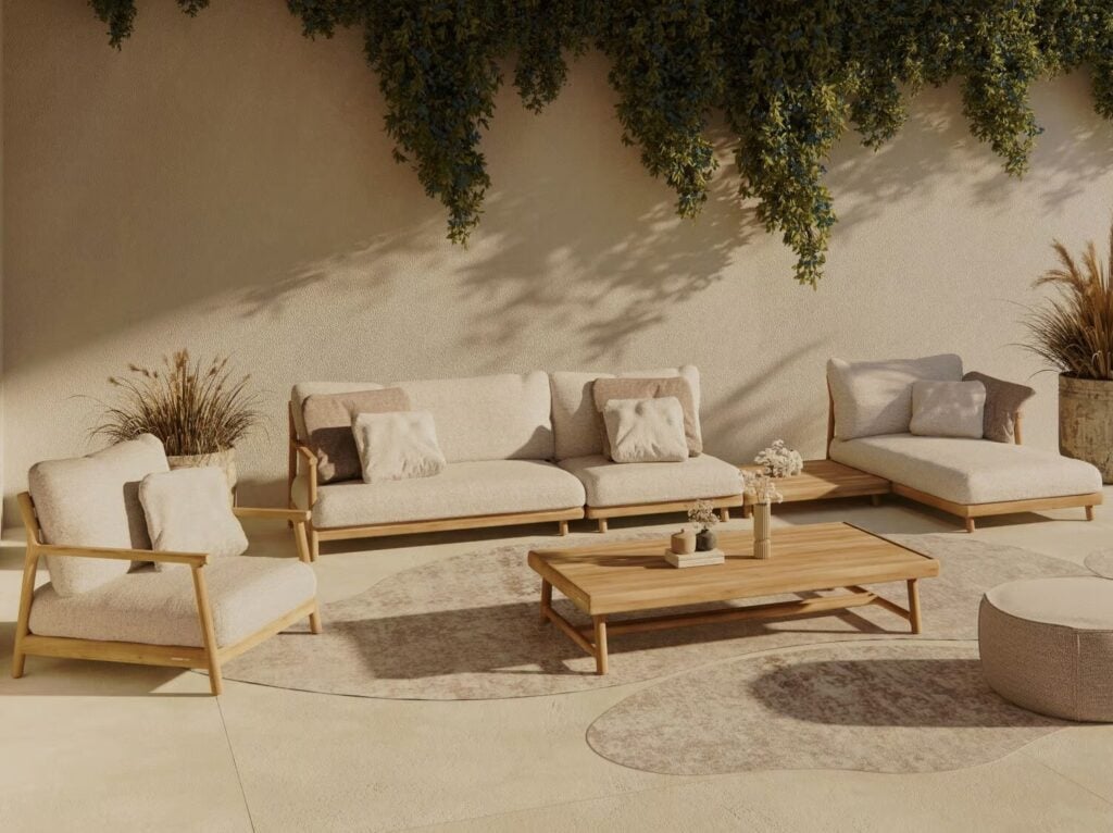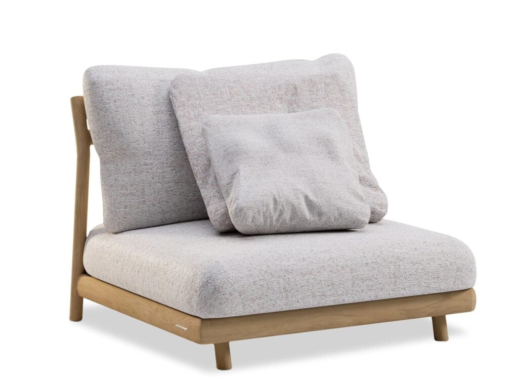 Umgeben von einem Gefühl der Reinheit bei der Verwendung natürlicher Materialien bietet MUYU eine Lounge-Kollektion sowie leichte und luftige Stühle. Weiche, abgerundete Verbindungen sorgen dafür, dass die eleganten Teakholz-Silhouetten nahtlos in eine einzige organische Struktur übergehen. Ergänzt durch grosse, flauschige Kissen, lädt MUYU zu geselligen Momenten im Freien ein - vom Sonnenaufgang bis zum Sonnenuntergang.