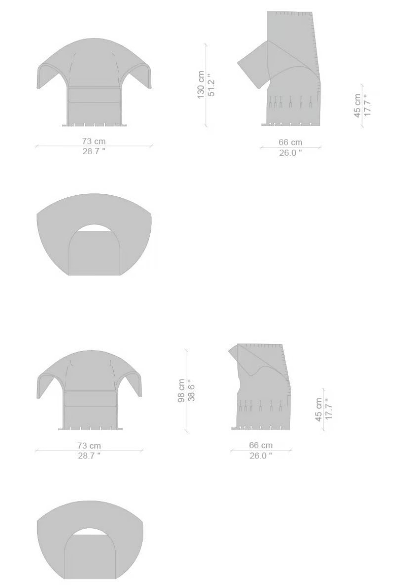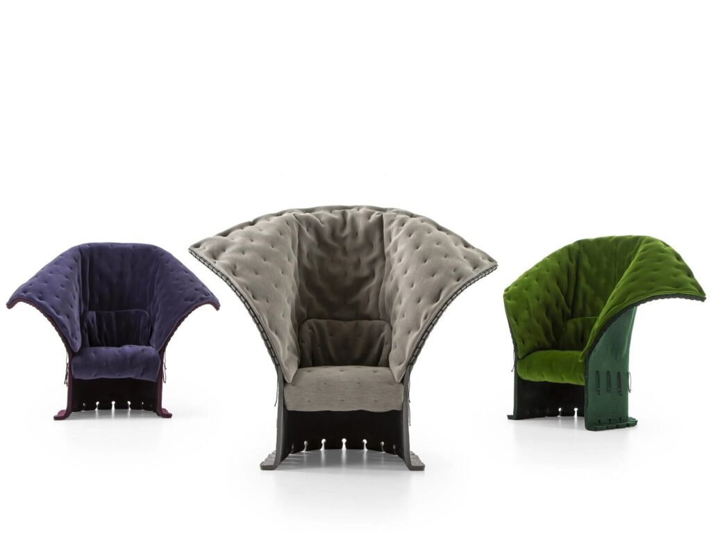 Dieser Sessel war bereits Protagonist zahlreicher Internetseiten für moderne Kunst und Sammler. Er stellt eine Synthese der figurativen Recherche auf dem hybriden Terrain zwischen Kunst und Nutzgegenstand dar. Ein einzigartiges Werk, das sich aufgrund seiner grossen Modellierbarkeit und der Möglichkeit auszeichnet, die Matte mit zahlreichen verschiedenen Stoffen zu beziehen, die mit den 6 neuen Farben der Struktur kombiniert werden können. Insgesamt stehen 10 Varianten zur Verfügung. Feltri entsteht im Forschungszentrum von Cassina, einem Ort, an dem mit avantgardistischen Konstruktionsweisen experimentiert wird, wo sich Gaetano Pesce dem Projekt widmete und eine von der Firma patentierte komplexe Bautechnik austüftelte. Der Sessel, der vollkommen aus dickem Filz gemacht ist, vereint die einhüllende, modellierbare Rückenlehne mit dem starren und robusten unteren Teil, der mit wärmehärtendem Harz imprägniert ist. Die Sitzfläche ist an der Struktur mit Hanfseilen befestigt, die auch den oberen Teil der Sitzfläche einfassen. Eine bequeme Steppmatte in Verbund mit Polyesterwatte kleidet das Innere des Sessels aus.