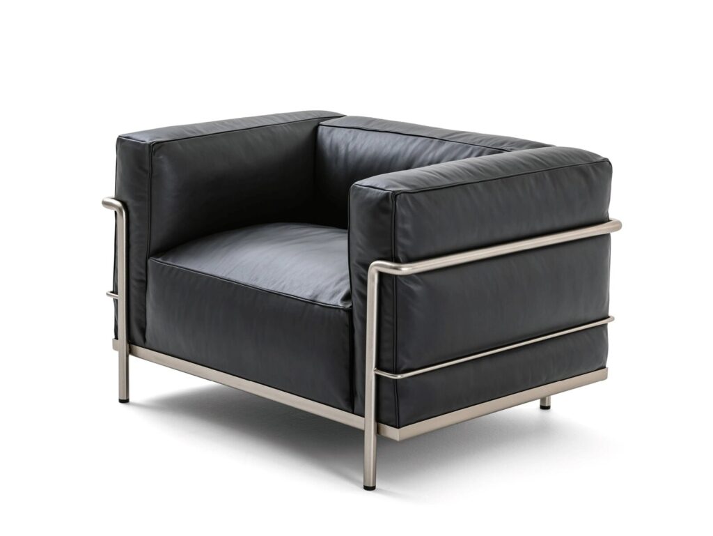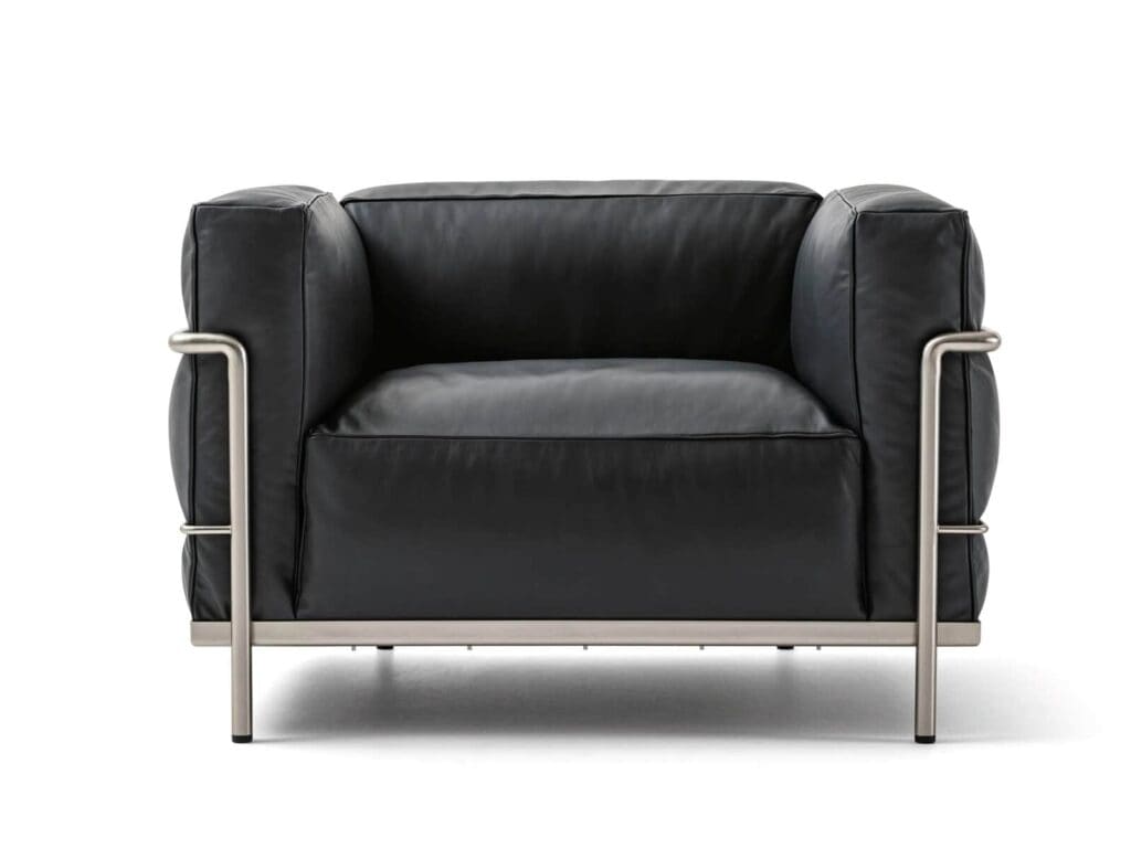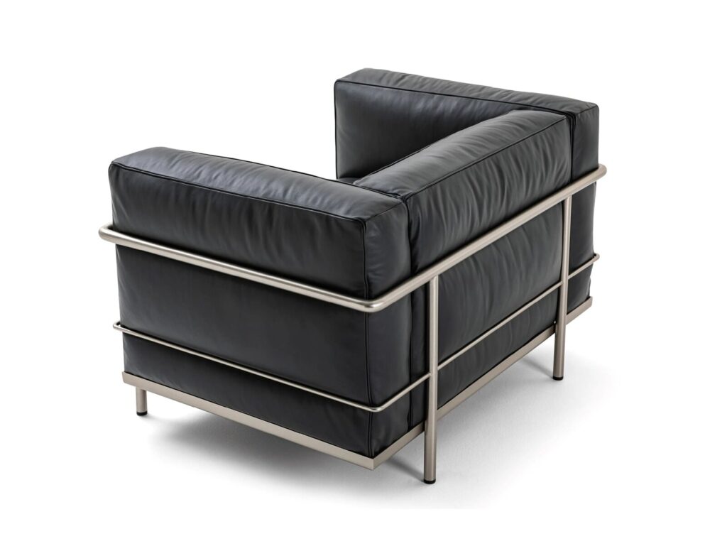 Bei den verschiedenen Modellen des Sessels Fauteuil Grand Confort, grand modèle wird die Logik der Moderne mit der Trennung von tragendem Gestell und gepolsterten Elementen umgesetzt. Die Kissen sind ohne Befestigung in einem Rahmen aus lackierten oder verchromten Stahlprofilen angeordnet, der das Hauptgestell dieses ikonischen Sessels in allen seinen Ausführungen bildet, vom Sessel mit einer oder zwei Armlehnen bis zu den Zweisitzer- oder Dreisitzersofas. Im Laufe der Jahre hat Cassina eng mit Charlotte Perriand, ihrer Tochter Pernette Perriand-Barsac und der Fondation Le Corbusier zusammengearbeitet, um neue Versionen und Oberflächen einzuführen, die zwar eine Neuinterpretation des Originalentwurfs darstellen, dessen Authentizität aber in jeder Hinsicht respektieren. Diese Modelle sind auch in einer umweltbewussten Version erhältlich. Dank der Arbeit, die Cassina LAB in Zusammenarbeit mit dem Kompetenzzentrum für Design POLI.design des Polytechnikums Mailand geleistet hat, besteht die Polsterung der Kissen aus Meltblown-Vliesstoff aus PET.