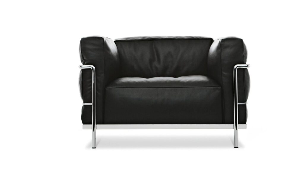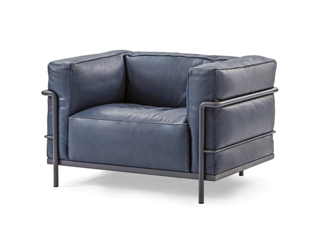 Bei den verschiedenen Modellen des Sessels Fauteuil Grand Confort, grand modèle wird die Logik der Moderne mit der Trennung von tragendem Gestell und gepolsterten Elementen umgesetzt. Die Kissen sind ohne Befestigung in einem Rahmen aus lackierten oder verchromten Stahlprofilen angeordnet, der das Hauptgestell dieses ikonischen Sessels in allen seinen Ausführungen bildet, vom Sessel mit einer oder zwei Armlehnen bis zu den Zweisitzer- oder Dreisitzersofas. Im Laufe der Jahre hat Cassina eng mit Charlotte Perriand, ihrer Tochter Pernette Perriand-Barsac und der Fondation Le Corbusier zusammengearbeitet, um neue Versionen und Oberflächen einzuführen, die zwar eine Neuinterpretation des Originalentwurfs darstellen, dessen Authentizität aber in jeder Hinsicht respektieren. Diese Modelle sind auch in einer umweltbewussten Version erhältlich. Dank der Arbeit, die Cassina LAB in Zusammenarbeit mit dem Kompetenzzentrum für Design POLI.design des Polytechnikums Mailand geleistet hat, besteht die Polsterung der Kissen aus Meltblown-Vliesstoff aus PET.