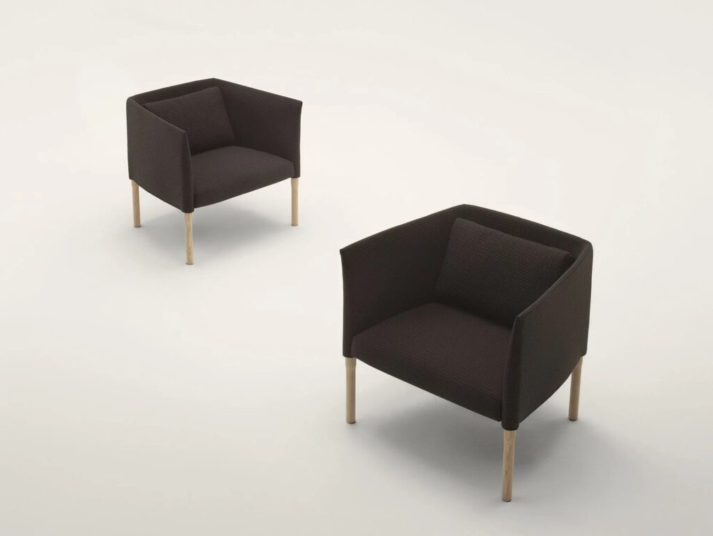 ELSIE - Serie bestehend aus Stuhl und Sessel für Innenräume. Struktur aus Stahl, Rückenlehne und Sitzfläche mit elastischen Gurten versehen. Beine aus natürlichem oder dunkel gefärbtem Eschenholz. Polsterung aus Polyurethanschaum. Abnehmbare Polsterung in den für Paola Lenti typischen Stoffen für den Innenbereich erhältlich.