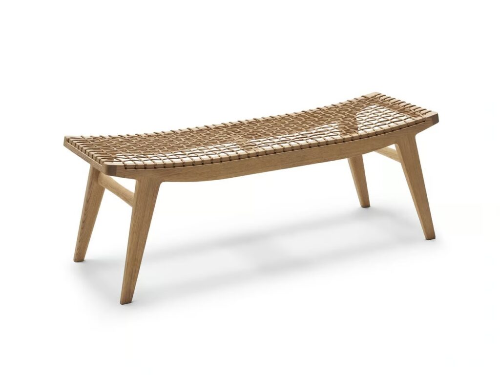 Bank aus Eiche und Baumwollkordel.