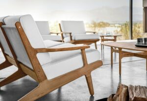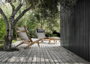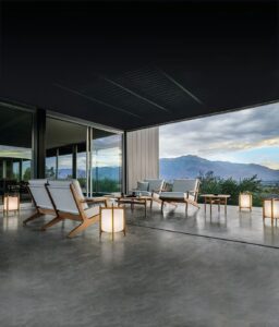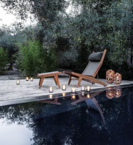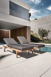 Bay ist eine skulpturale, monolithische Kollektion von geflochtenen Außenmöbeln. Umhüllende, geflochtene Volumen werden mit gepolsterten, felsenähnlichen Sitzen und weichen Kissen kombiniert, die die Eleganz, den Komfort und die Raffinesse der Innenraumprodukte von B&B Italia widerspiegeln. Die sinnliche Form des doppelten Geflechts schafft Luftpolster, die der Kollektion Transparenz und Leichtigkeit verleihen.