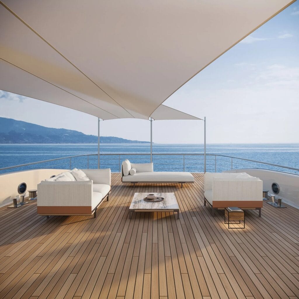 Costiera+Baia beschreiten einen noch nie dagewesenen und eindrucksvollen Weg in der Welt des Yachtdesigns und der Outdoor-Dekoration, indem sie eine neue Philosophie des Wohnens unter freiem Himmel vorschlagen, die sich vom Festland auf das Meer überträgt und das Schiff als einen unbegrenzt bewohnbaren Raum gestaltet, der auf raffinierte und komfortable Weise eingerichtet werden kann und in dem die Innenräume in ständiger Beziehung zur Aussenwelt stehen.