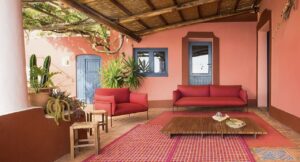 Serie bestehend aus modularen Elementen, Sessel, Zweisitzer-Sofa und Hocker. Die Struktur aus matt oder glänzend lackiertem Edelstahl wird durch große Sitz- und Rückenkissen ergänzt, die mit Massivholzdetails an der Struktur befestigt und mit den exklusiven Outdoor-Stoffen der Paola Lenti Kollektion bezogen sind.