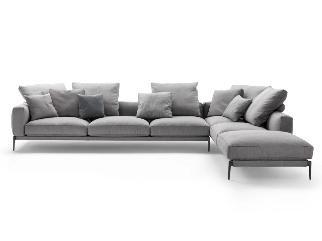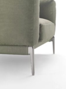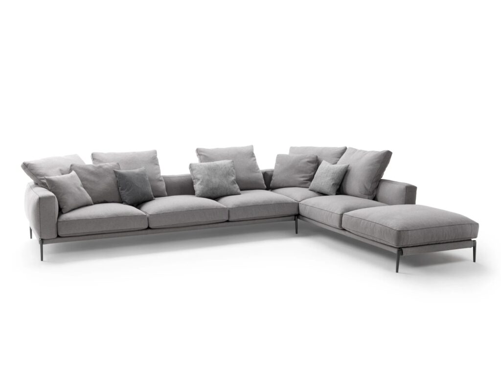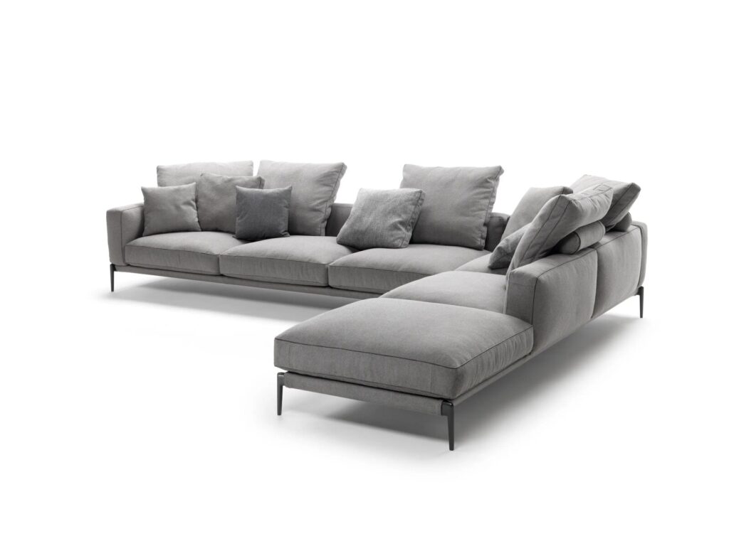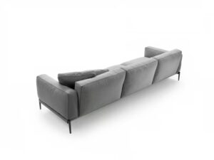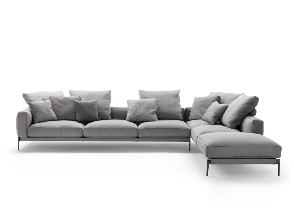Das Sofa Romeo hebt sich mit schlanken Füßen aus Aluminiumdruckguss von Boden ab und zeichnet sich durch seine ästhetisch leichte Linienführung aus, mit Proportionen und Details, die vom schneiderischen Können der Firma zeugen, wie das feine Gros Grain Umrandungsprofil, das alle Nähte nachzeichnet und die Harmonie der Formen unterstreicht. Dank der perfekten Neigung des Sitzes und der großzügigen Daunenpolsterung der Kissen, zeigt das Sofa Romeo erneut das Engagement der Firma, schlichte Eleganz mit hohem Niveau an Komfort zu verbinden. Romeo ist ein Sitzprogramm, das sich durch seine enorme Vielseitigkeit auszeichnet, die es ihm erlaubt, mit gleicher Nonchalance alle Stoffe und Lederarten der Kollektion Flexform zu tragen und jedes Mal eine andere Persönlichkeit anzunehmen. Das Sofa Romeo eignet sich also zur Einrichtung aller Räumlichkeiten, von minimalistisch geprägten Kontexten bis zu mehr klassisch gestalteten.