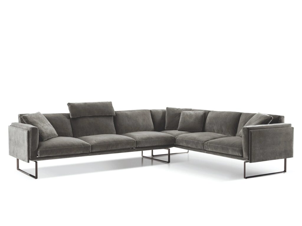 Komfort und zeitlose Eleganz kennzeichnen die minimalistischen und vielseitigen Proportionen von Otto. Seine modulare Struktur vereint in sich bauliche Exzellenz und sartoriale Genauigkeit bei allen Aspekten des Produkts. Die Basis aus Aluminiumextrusion gestattet die Gestaltung und Zusammenstellung von Elementen mit unterschiedlicher Länge, die das lineare, reine Design hervorheben und eine umfangreiche Auswahl an Konfigurationen möglich machen. Der in den mittleren Schlitz der flexiblen Paneele eingesteckte Bezug, eine Tätigkeit, die mit Millimetergenauigkeit von Hand durchgeführt wird, bringt das handwerkliche Können von Cassina zum Ausdruck. Die Dauneneinsätze von Sitzfläche, Rückenlehne und Armlehnen verstärken das Gefühl der Leichtigkeit und Weiche der Formen. Das Sofa wird mit besonders minutiösen Verarbeitungen fertiggestellt und ist auch in der Version mit Einsätzen aus Polyesterwatte erhältlich.