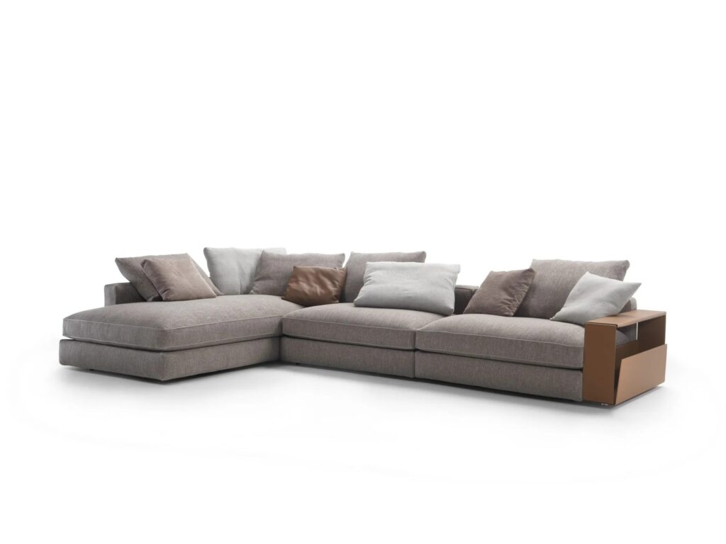 Das Sofa Harper gibt es in drei Tiefen – 99, 111 und 126 cm - und die Vielfalt der erhältlichen Elemente, sowie die unzähligen Kombinationsmöglichkeiten zwischen Textil- und Lederbezügen und Lederdetails machen es zu einem äußerst vielseitigen Sitzprogramm, das sich problemlos in die unterschiedlichsten Umgebungen einfügt.